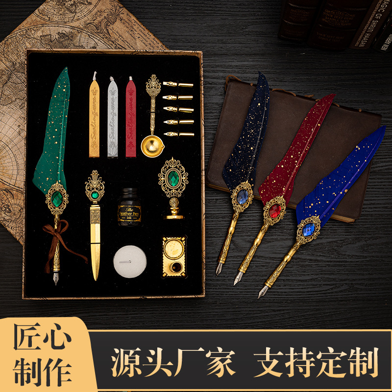 多伶文化制笔厂创始于:1998年,在国际商贸城三区市场设有实体店,可开增值税发票,专票, 专业生产:欧式复古羽毛笔,创意文具礼品套装..... 款式齐全,价格优势,专业供货:外贸公司,国外跨境,国内外商超实体店,常年500多款现货 实力供应!所有产品可根据客户需求定制生产,可定制不同的:图案,文字,logo 品牌 外包装 实力老工厂 , 爆款上新快, 质量有保证,量大价优,原创专利设计, 批发客户请与老板娘联系报价. 联系手机号微信同号:13616794052,真诚期待与您的合作!
