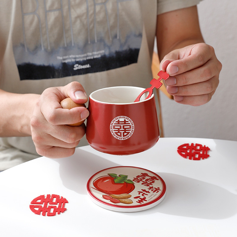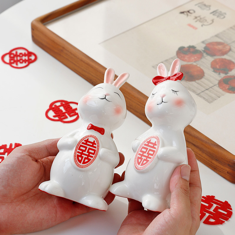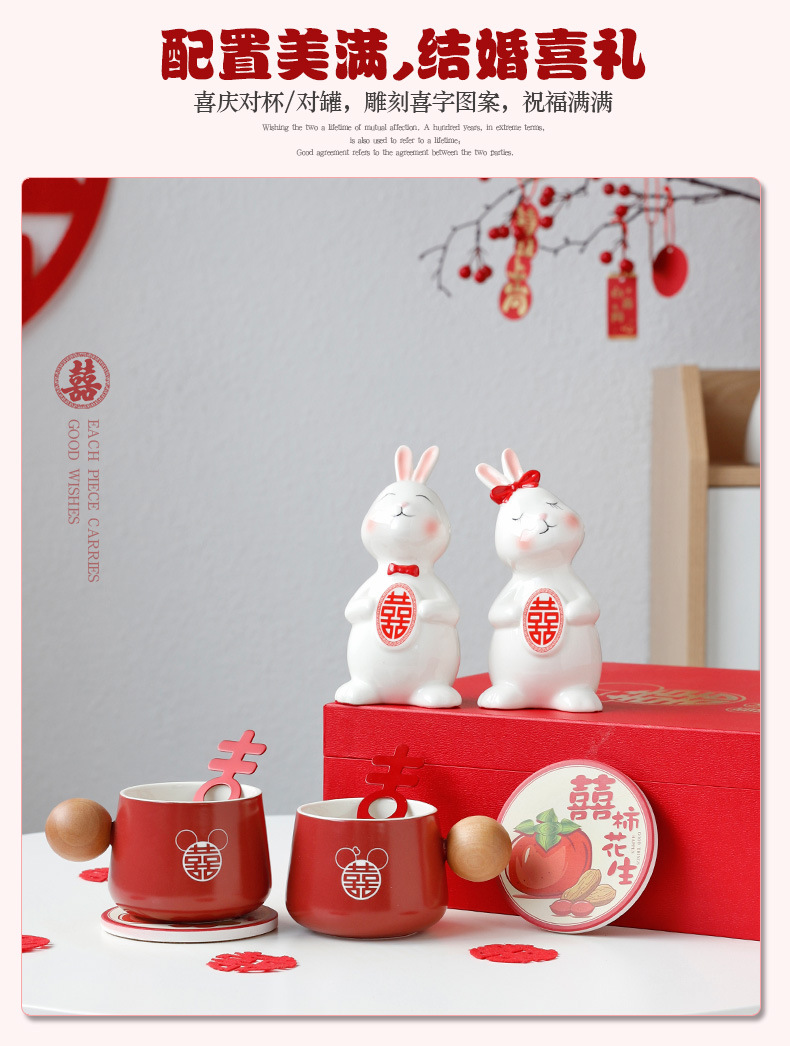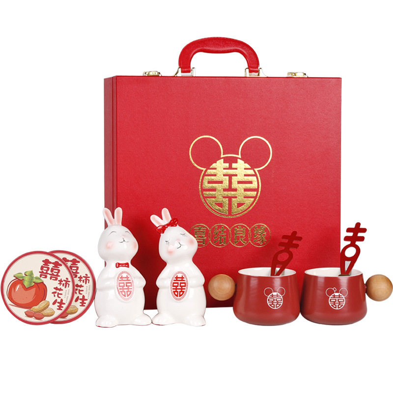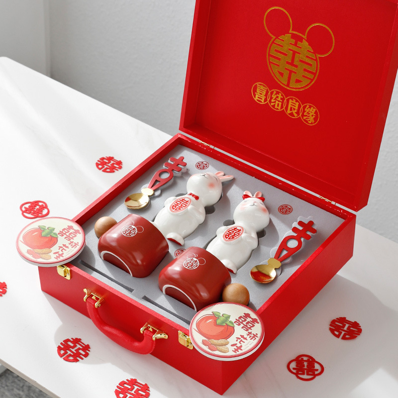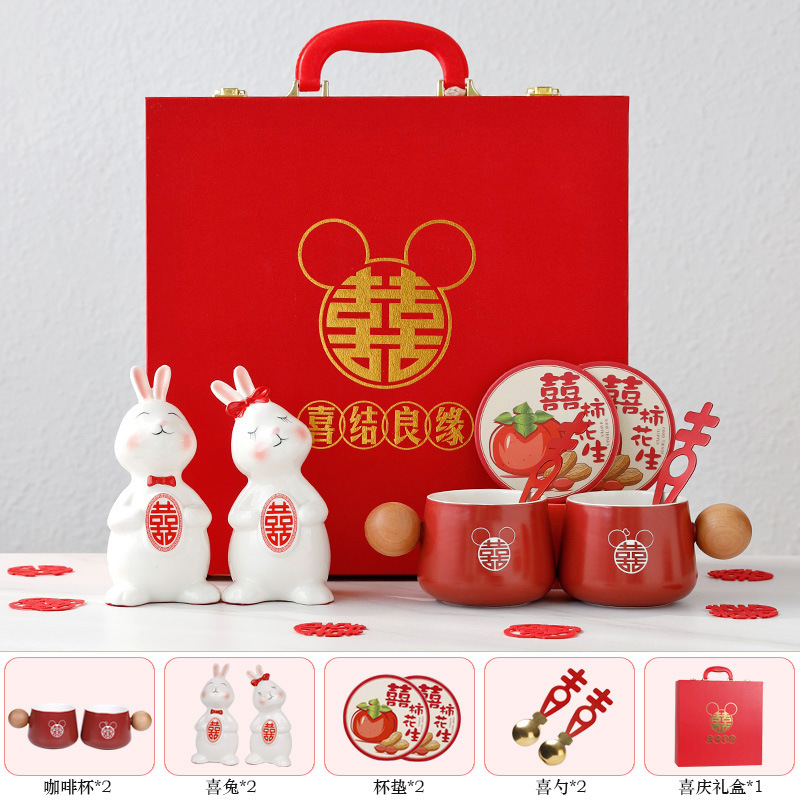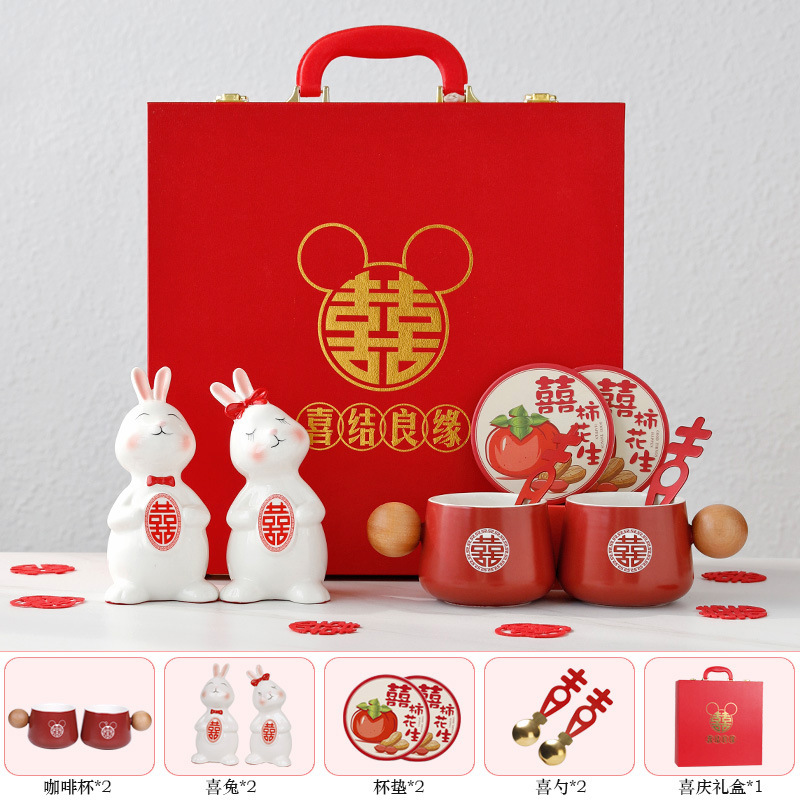 新婚兔子情侣杯陶瓷红色礼盒套装结婚订婚礼物送闺蜜实用伴手礼品