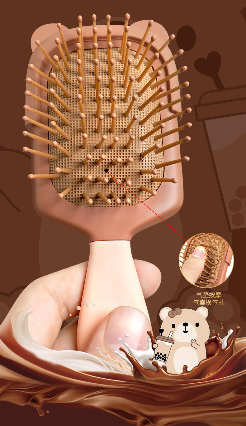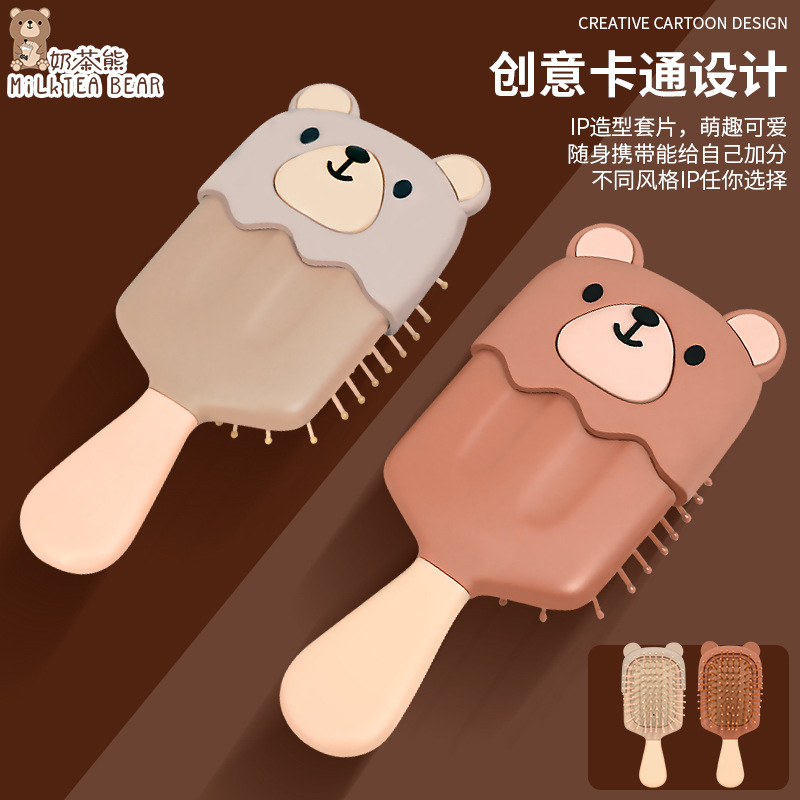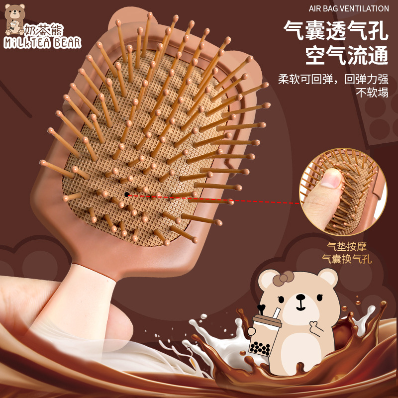 丽娜原创便携式奶茶熊气垫梳可爱卡通小熊气囊梳少女随身梳子批发