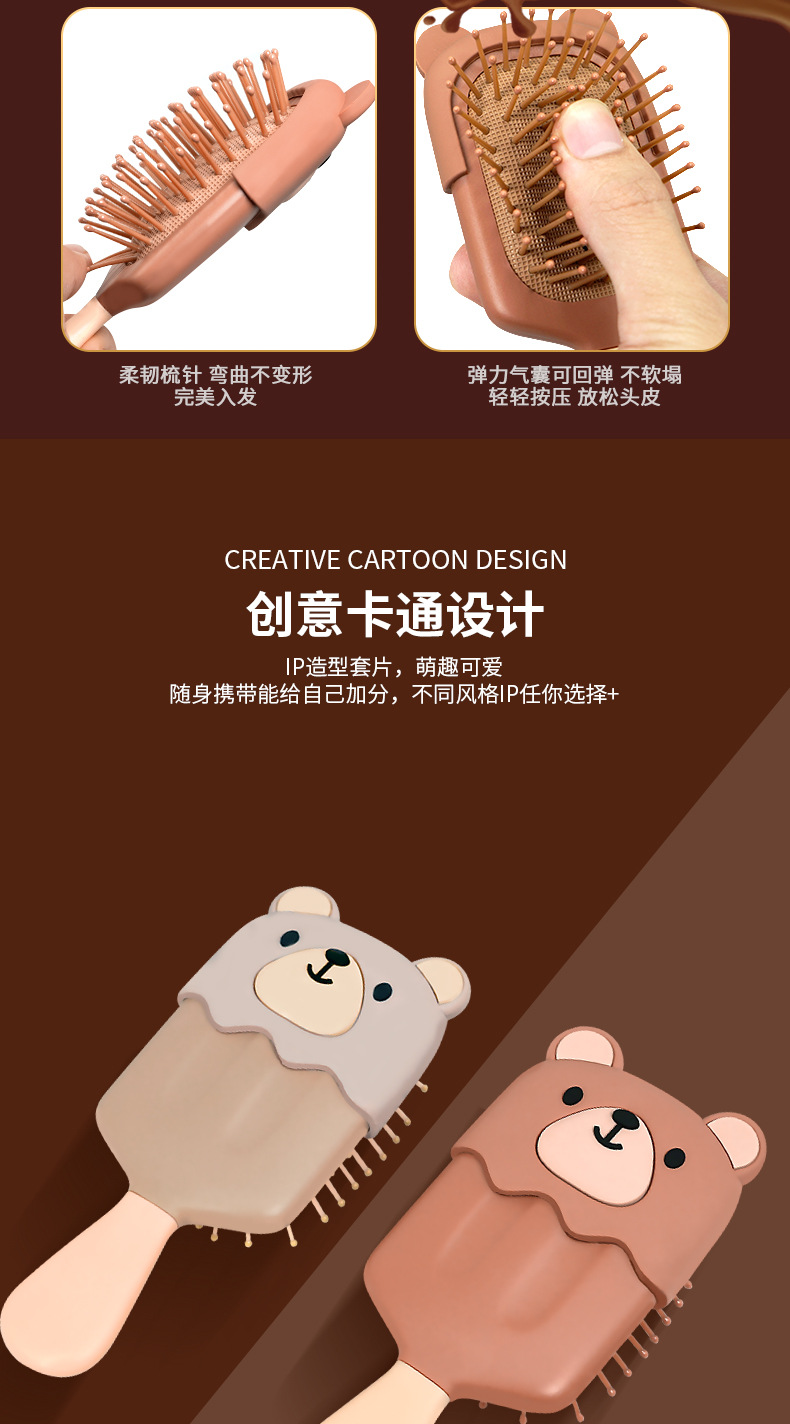 丽娜原创便携式奶茶熊气垫梳可爱卡通小熊气囊梳少女随身梳子批发 投诉
