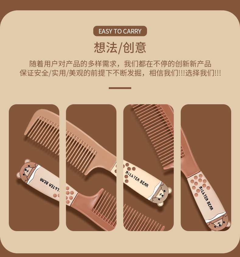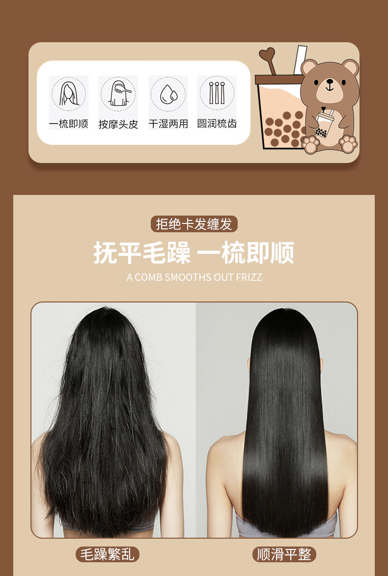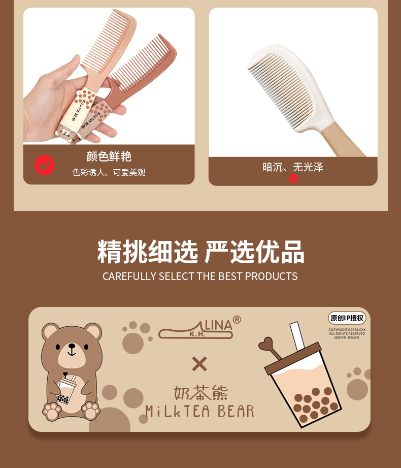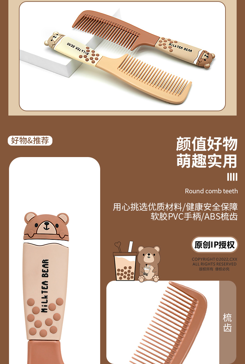 奶茶熊原创家用造型梳卡通梳子专用顺发可爱便携软女士批发美发梳 投诉