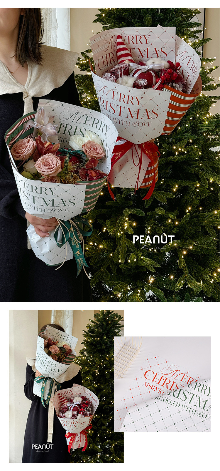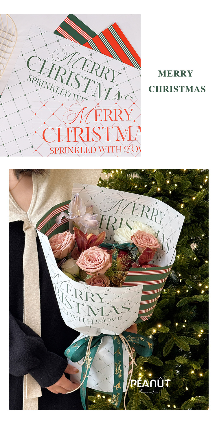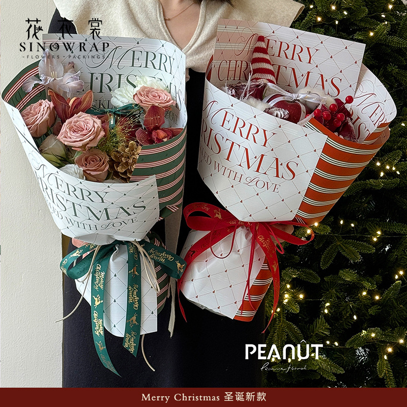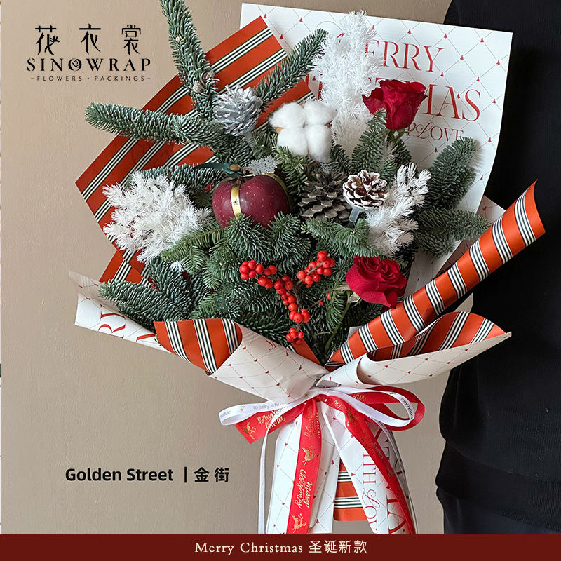 圣诞节防水包装纸鲜花花束苹果包装花店手工diy礼品纸资材