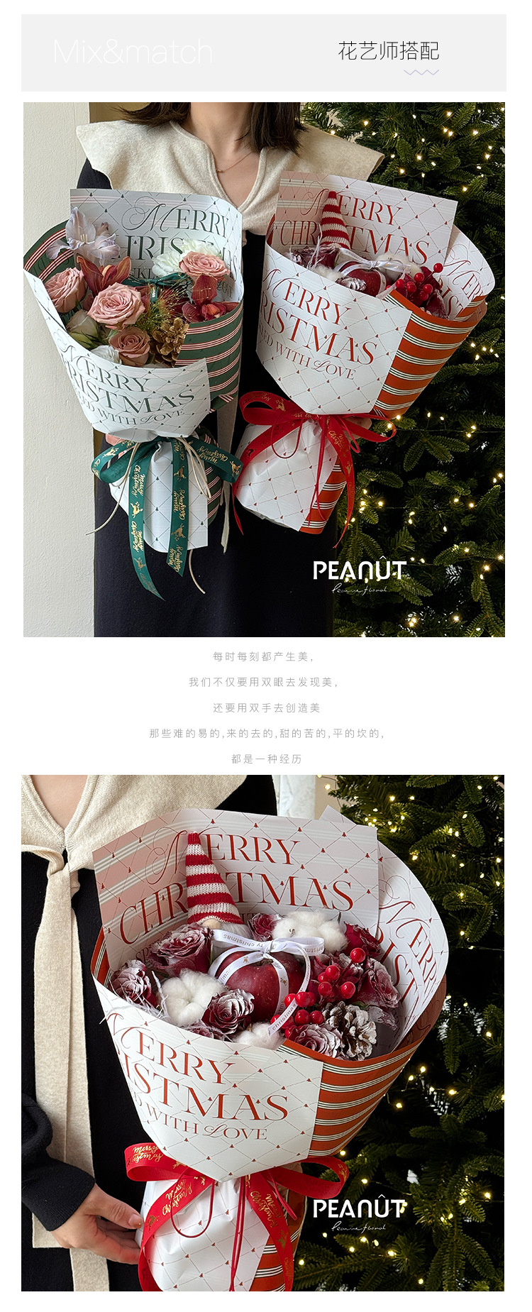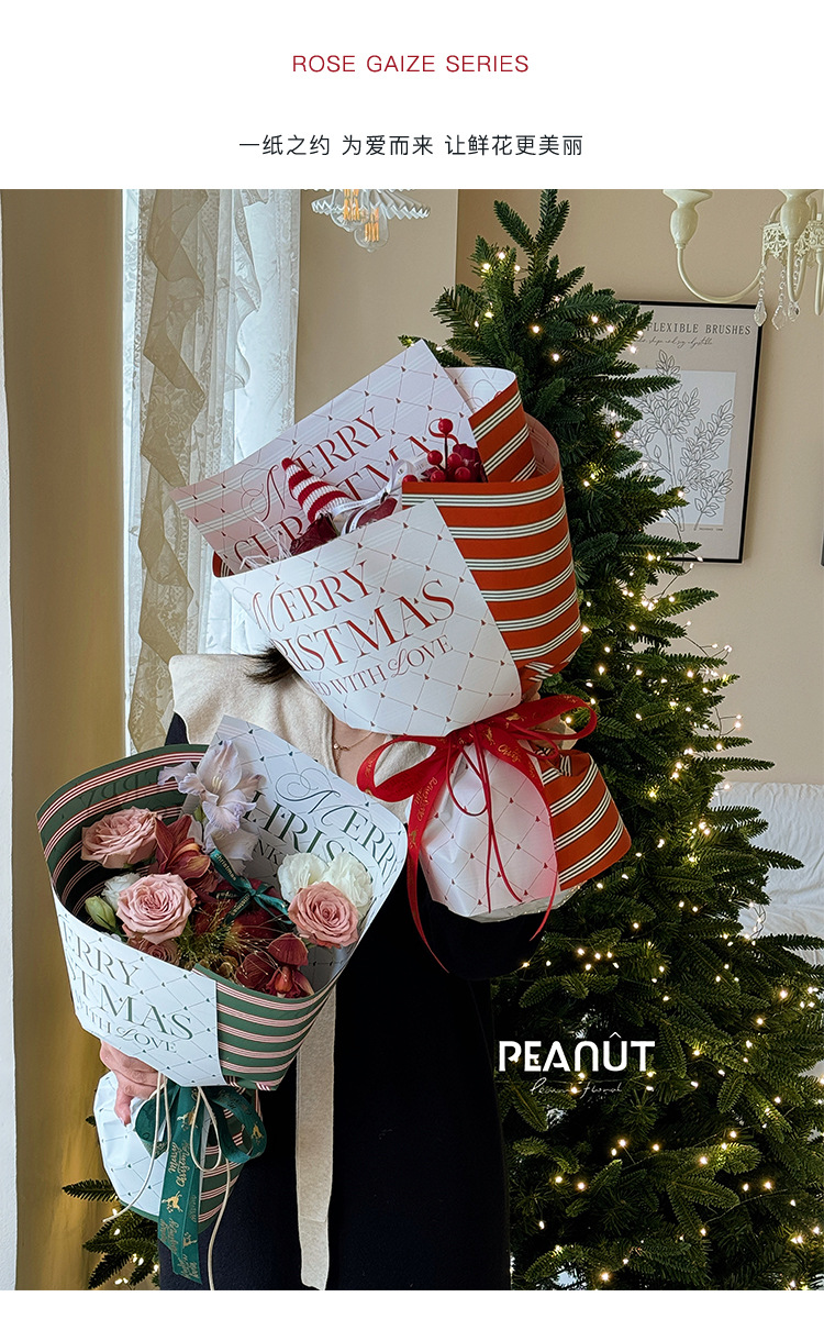 圣诞节防水包装纸鲜花花束苹果包装花店手工diy礼品纸资材 投诉