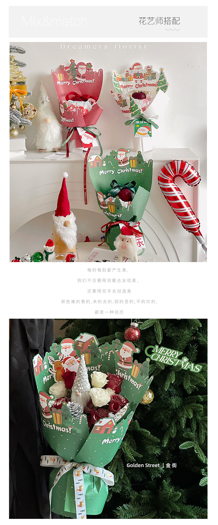 花衣裳 圣诞节异形包装纸苹果花束礼物包装纸小尺寸