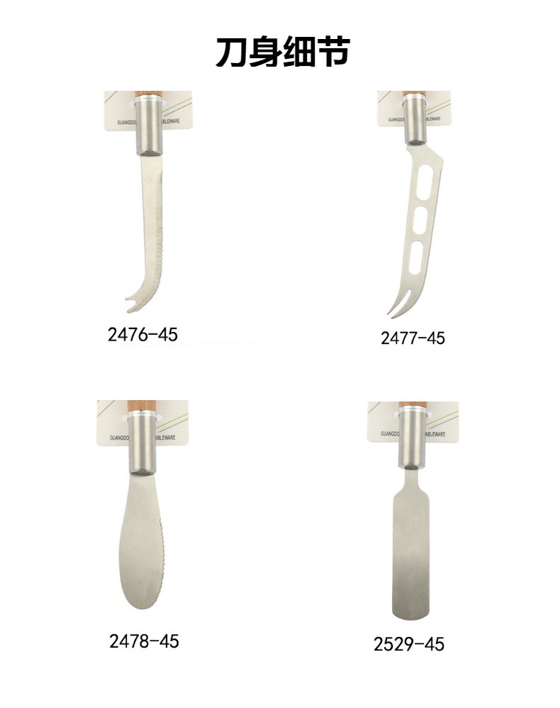 跨境不锈钢榉木手柄芝士刀果皮刀牛油果刀刮刀多功能厨房用品杂具