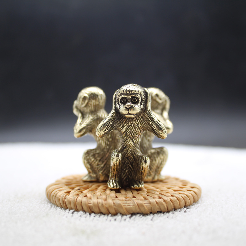 纯铜摆件三不猴不看不说不听办公书房桌面装镇纸饰品小茶宠铜艺