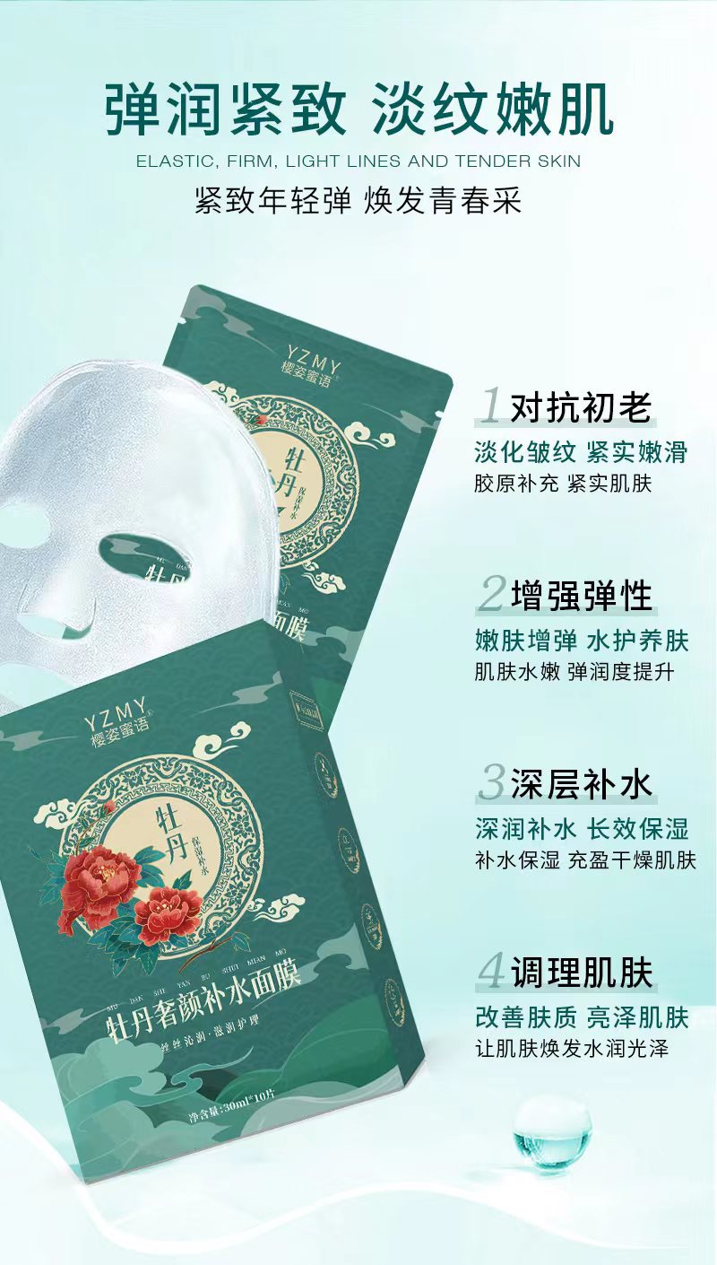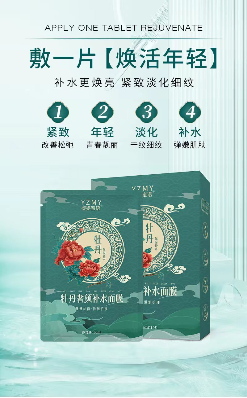 樱姿蜜语国风牡丹植物精粹补水面膜保湿修护紧致肌肤舒缓透亮护肤专供出口 投诉