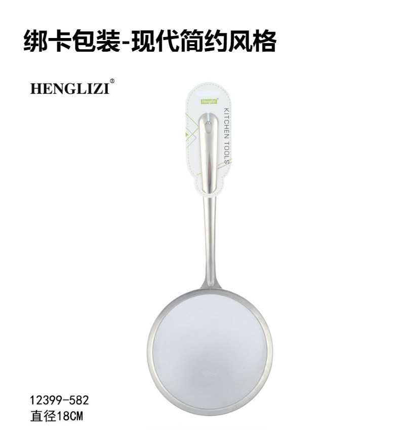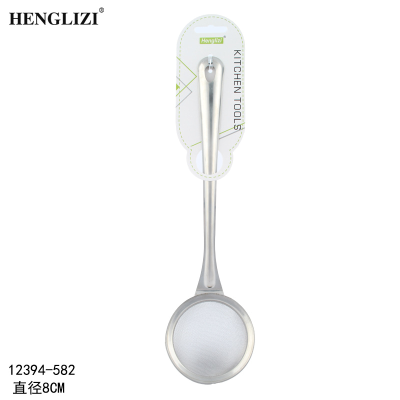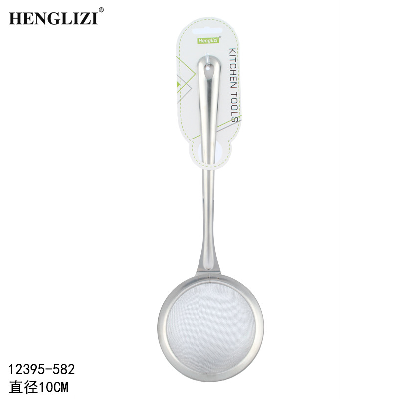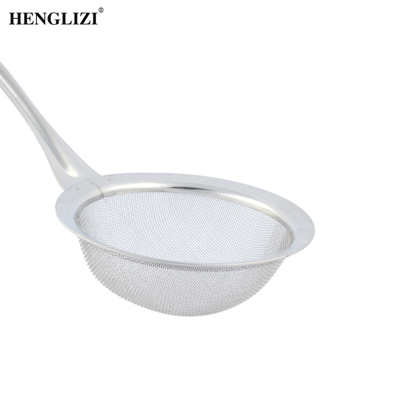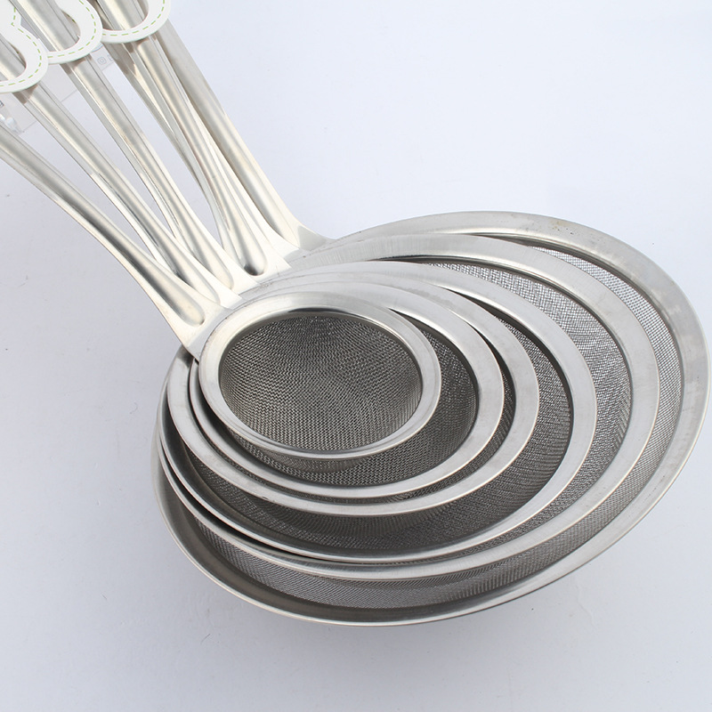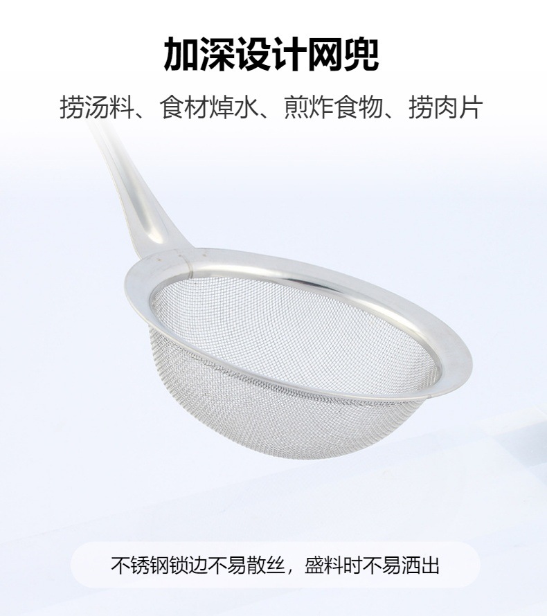 跨境不锈钢厨房用具过滤油渣勺打沫勺圆头钢柄家用过滤网漏勺油格