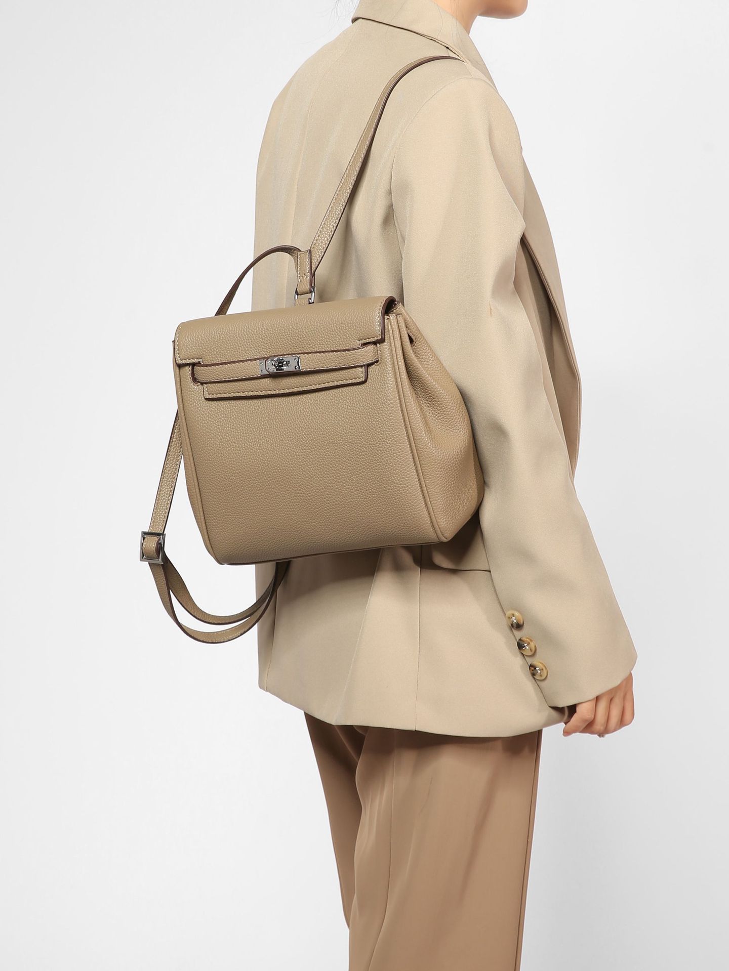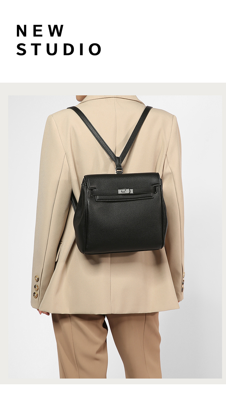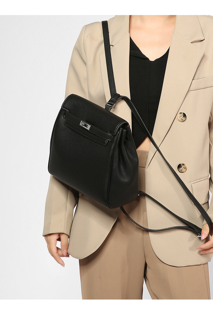 新款设计感经典百搭荔枝纹凯利双肩背包休闲女包高级感通勤小包包