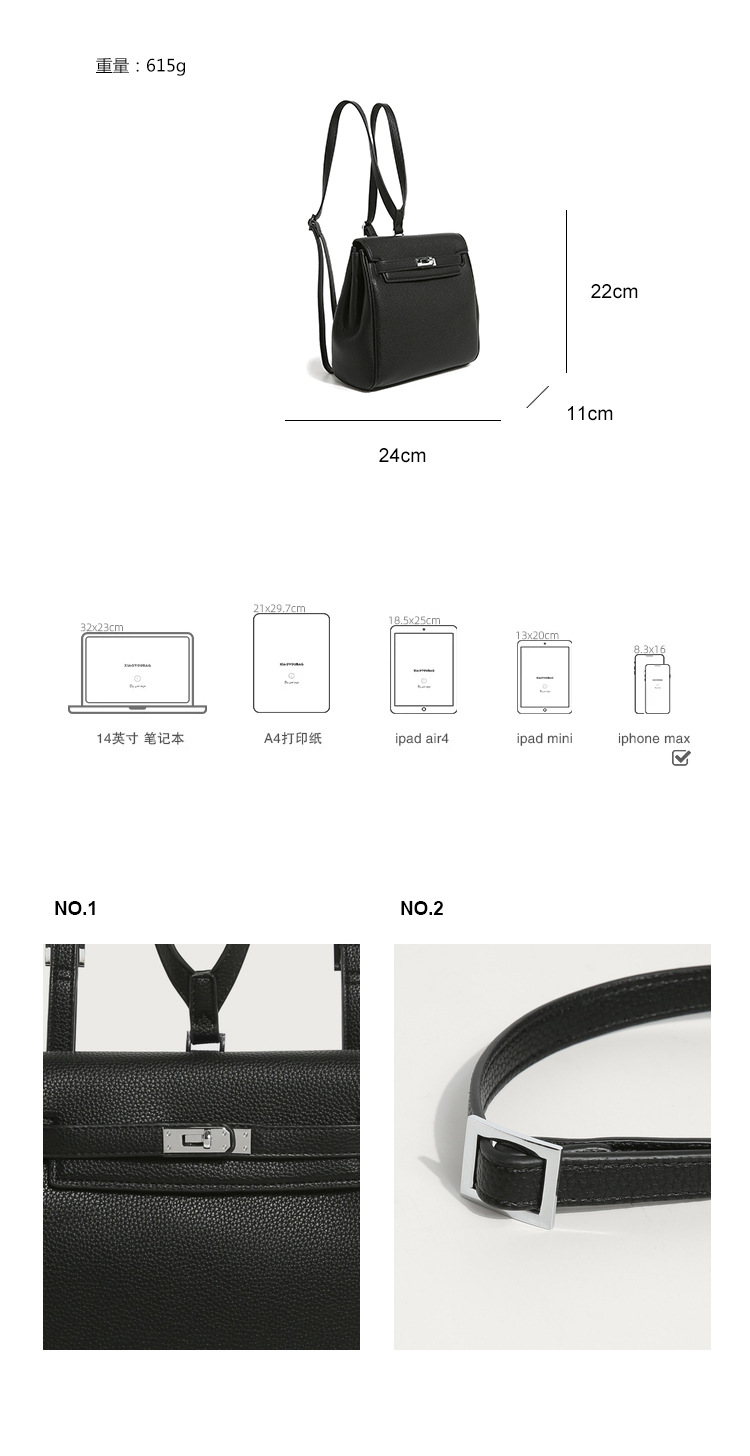 新款设计感经典百搭荔枝纹凯利双肩背包休闲女包高级感通勤小包包 投诉