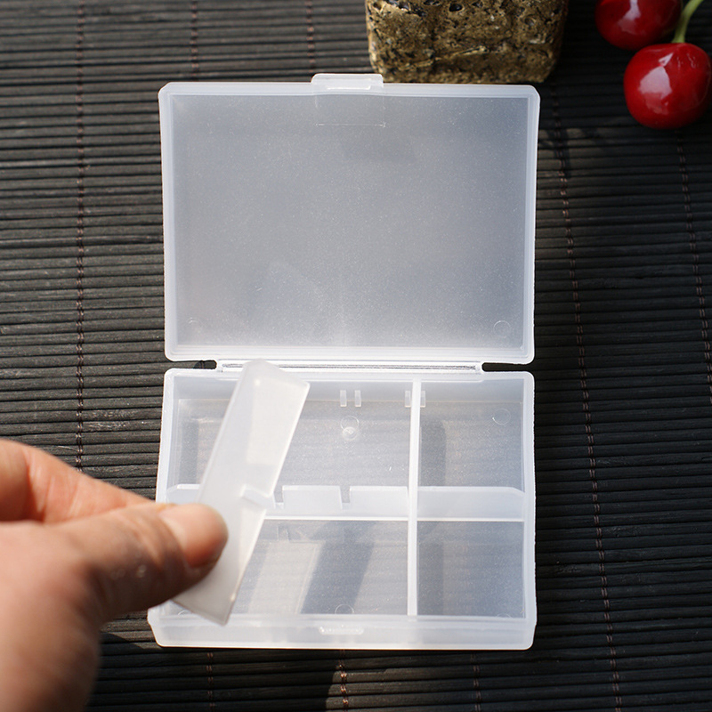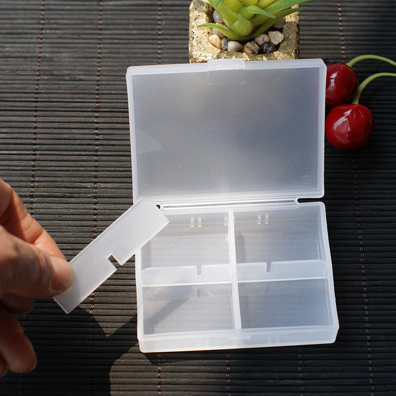 内附五片可拆式隔板,能自由调整幅宽,多可以分成六格.约8.5×6.5×2 CM 可以装药丸.饰品等
