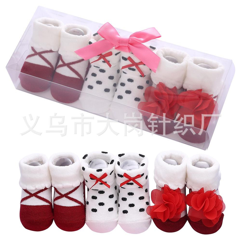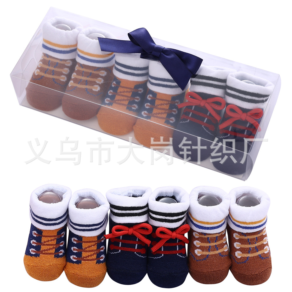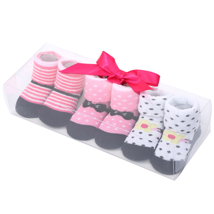 3双精美礼盒袜,外贸款适合0-12个月的宝宝。有12款可挑,3双1盒,请拍3的倍数。