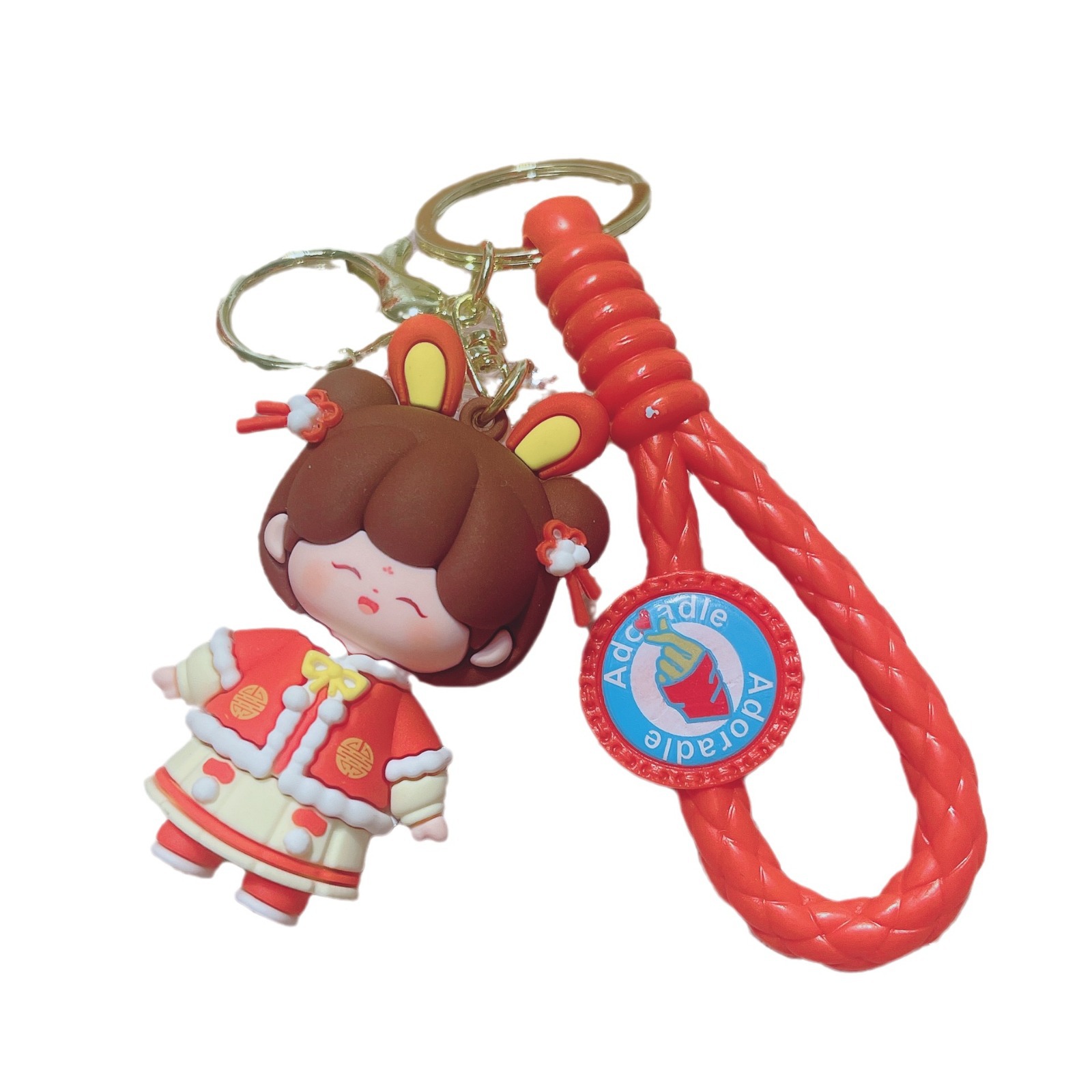 网红创意吉娃娃公仔汽车钥匙链钥匙扣可爱辫子女孩卡通包包挂饰