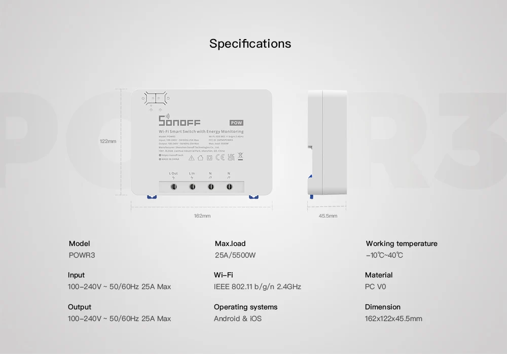 Sonoff POW R3智能WIFI大功率电量统计定时语音控制开关25A通断器 English | 投诉