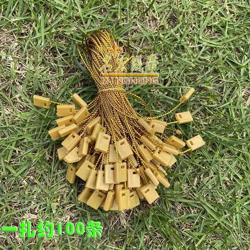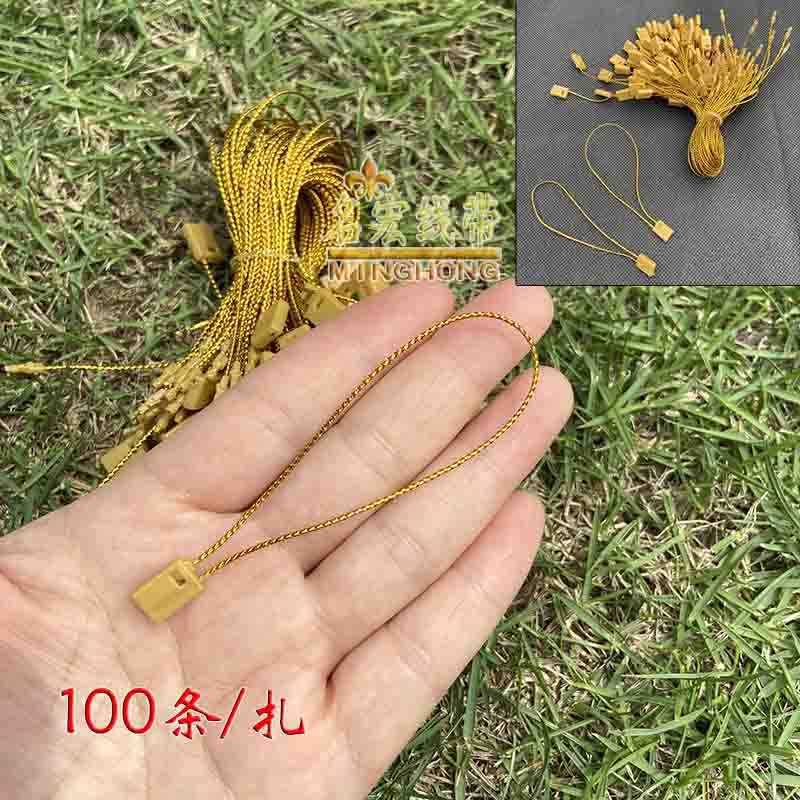 该产品有圆金丝线塑料方头制作而成,可做各种商品商标吊牌绳服装服饰吊牌线,厂家用户可来样定制,本店自产自销实体店线上线下兼营,店内还有多种商标吊牌线/绳。