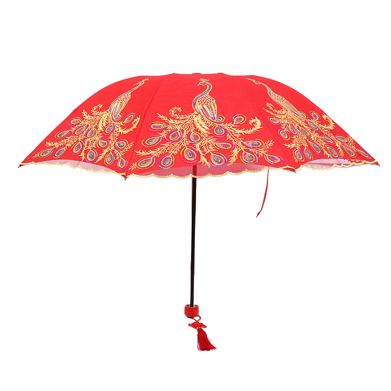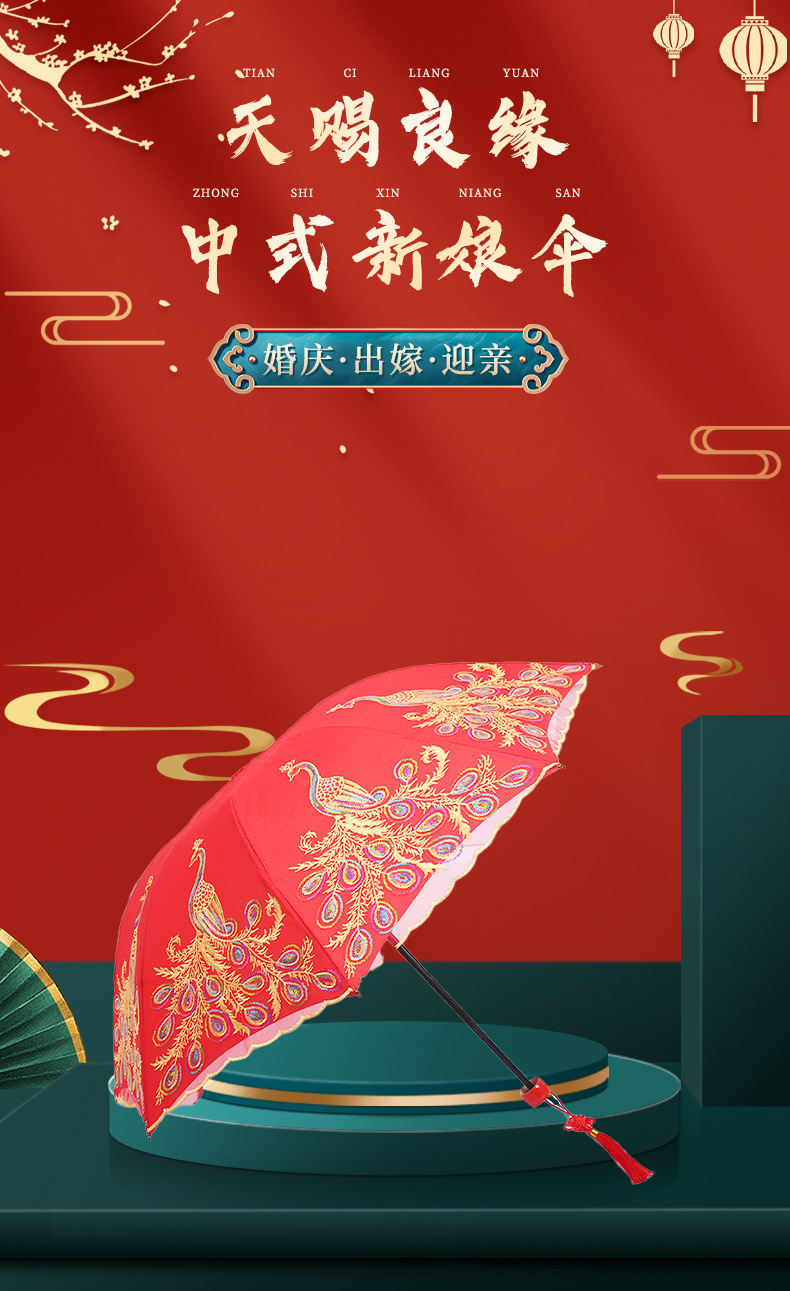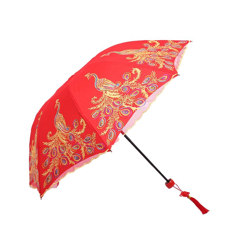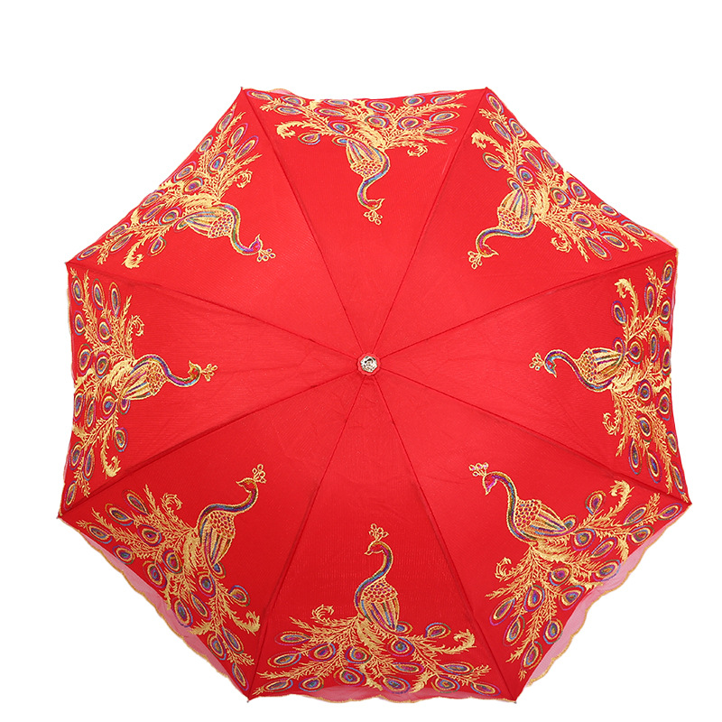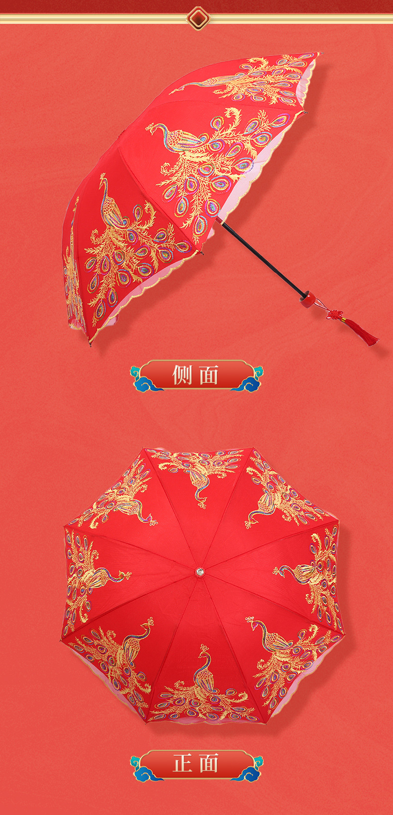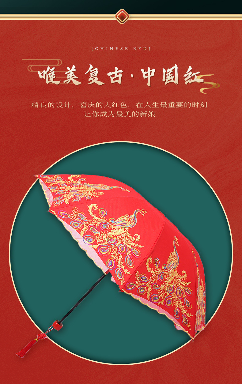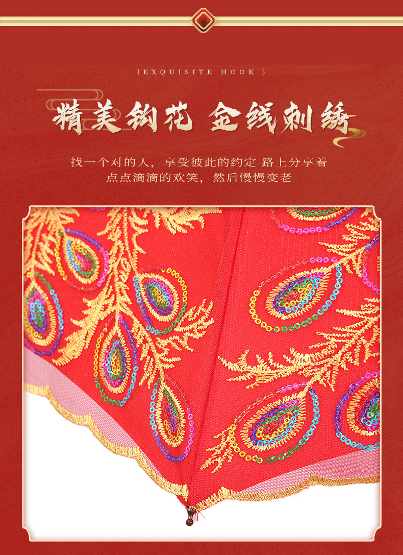 新娘伞婚礼婚庆结婚红伞鸾凤和鸣长柄大红伞自动双层蕾丝边礼品伞 投诉