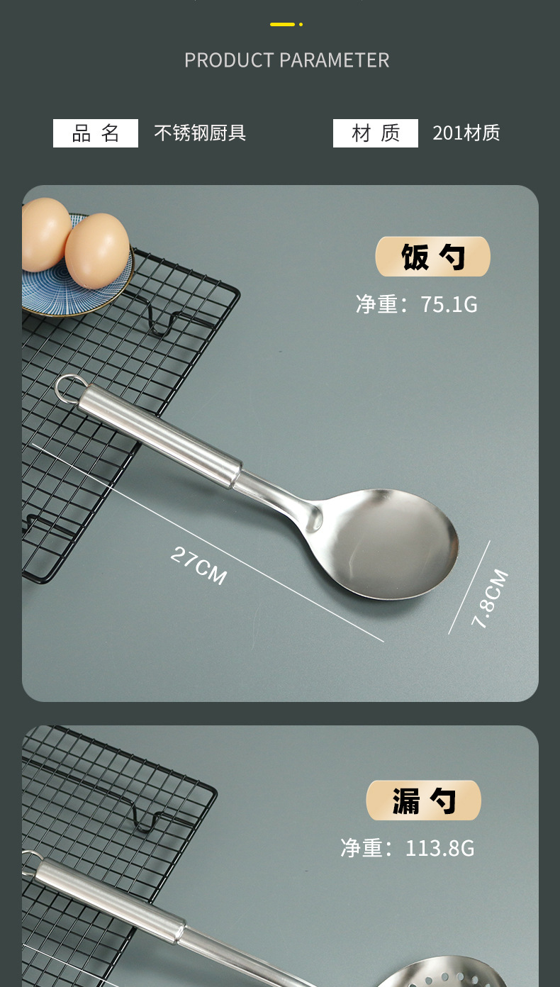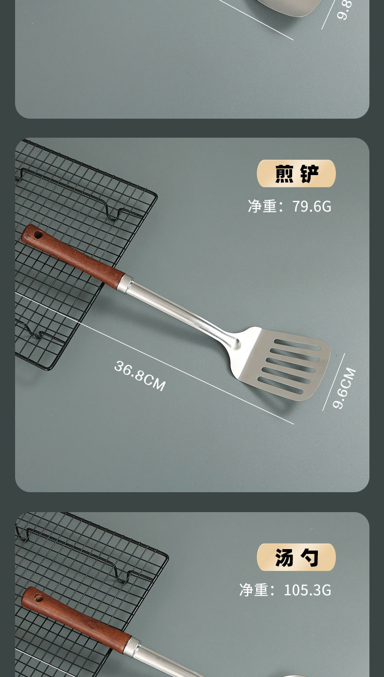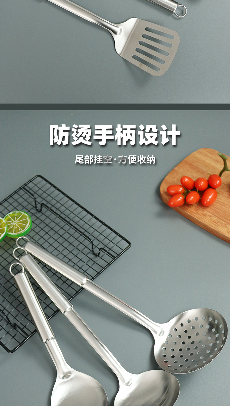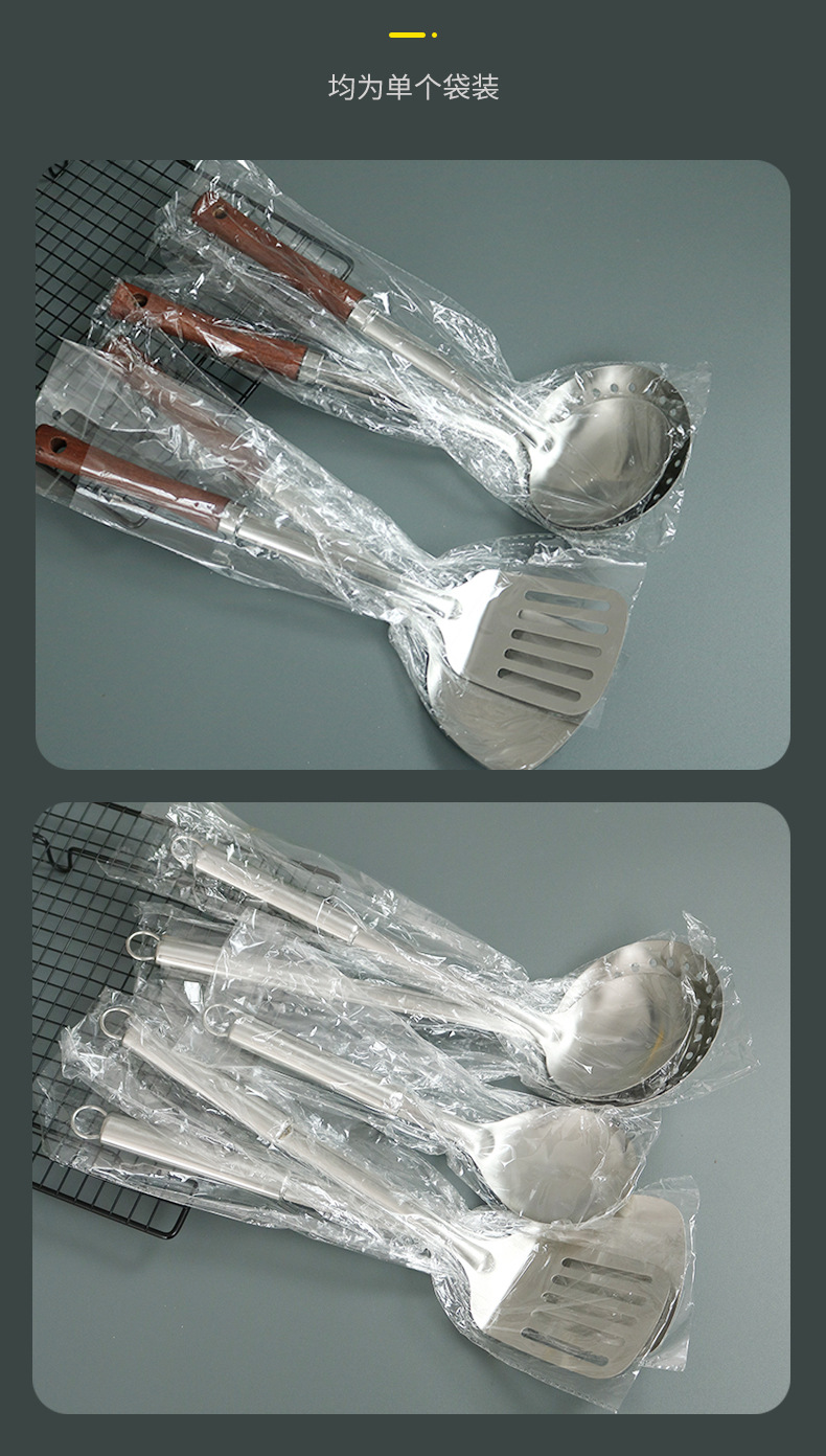 不锈钢木柄汤勺厨房用品厨具炒铲加厚防烫炒菜铲子锅铲勺子套装 English | 投诉