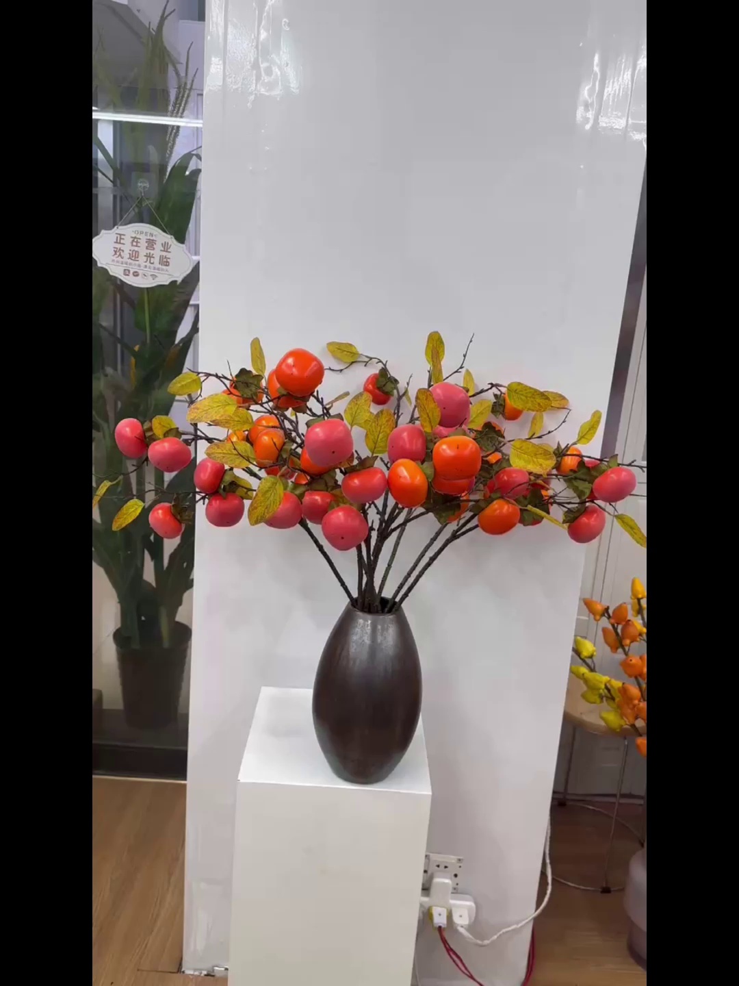 仿真水果单枝5头柿子带叶园林工程柿子造景装饰厂家直售