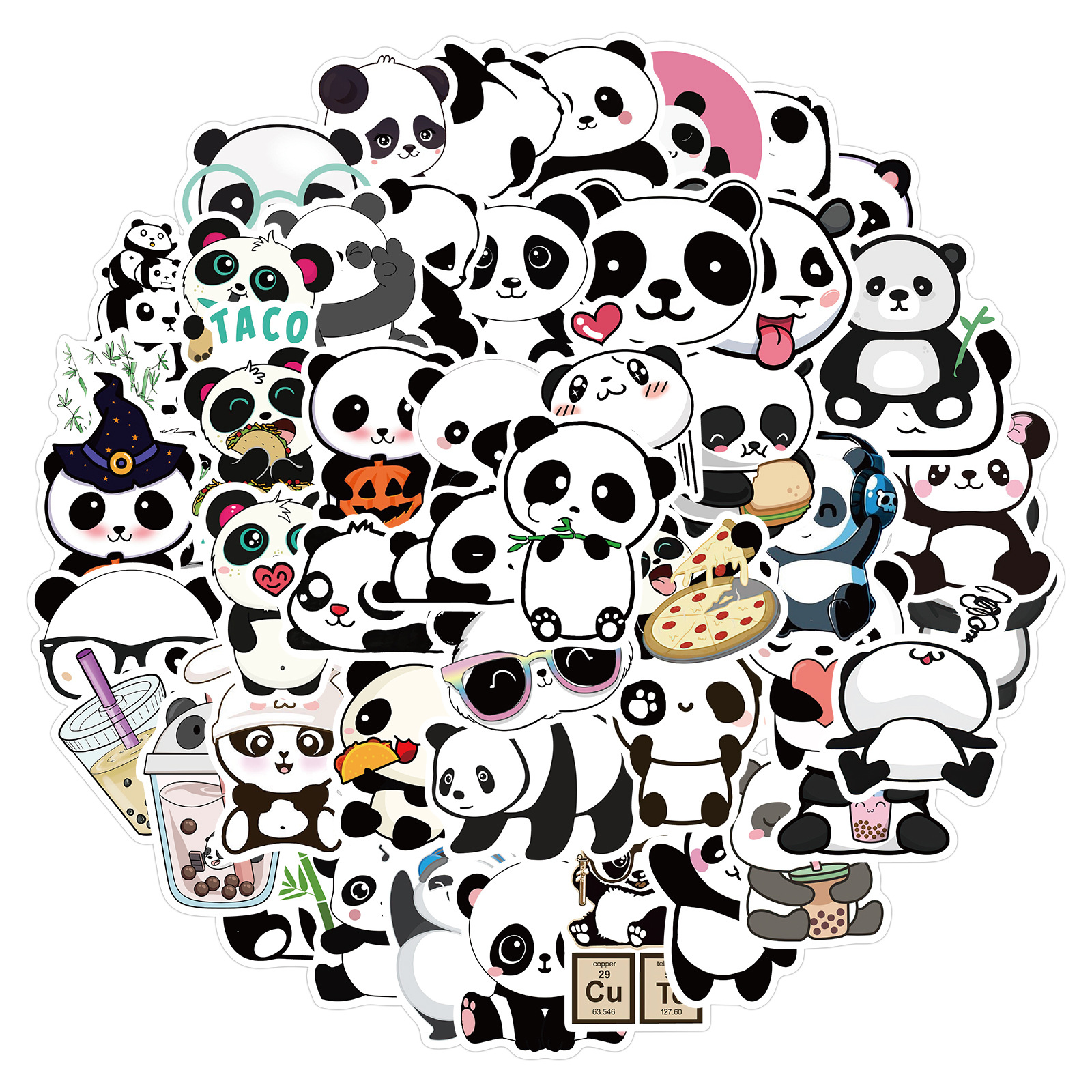 50张卡通熊猫涂鸦贴纸个性装饰摩托车行李箱防水外贸批发可批发