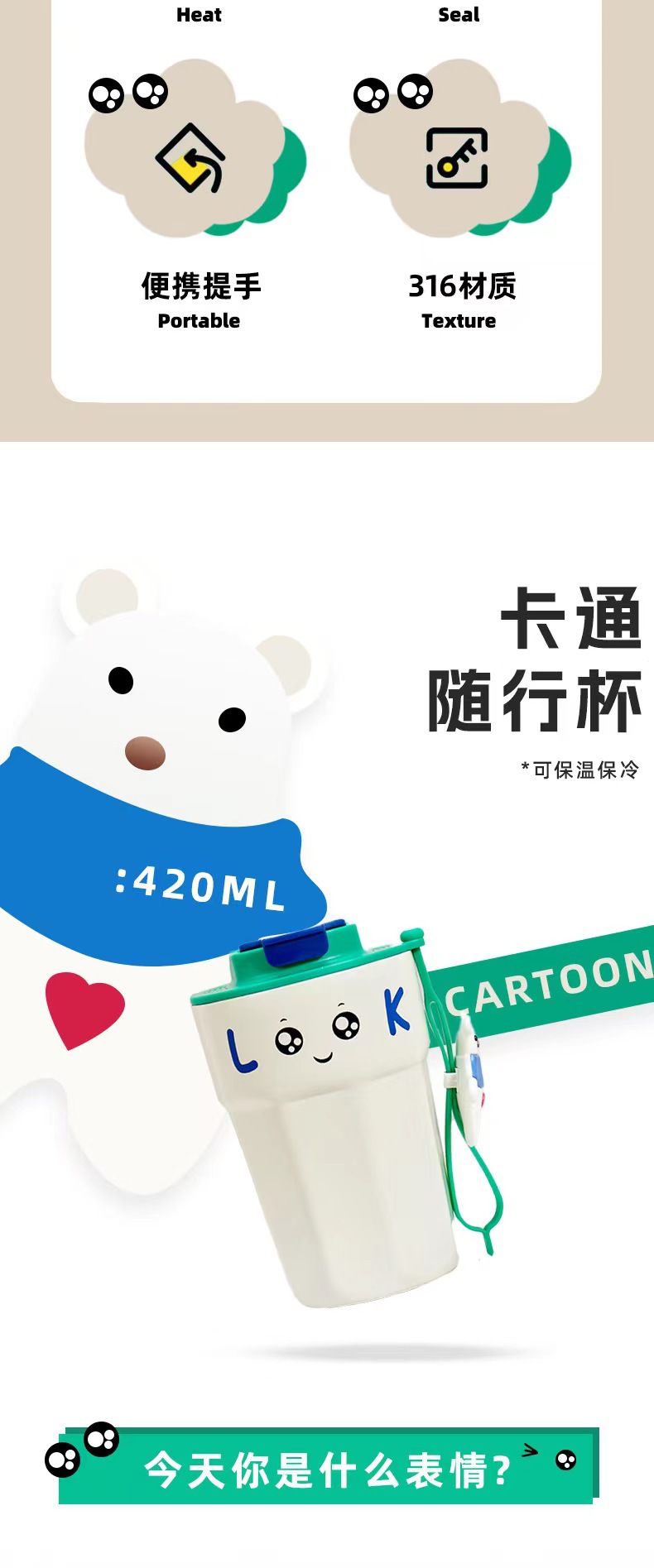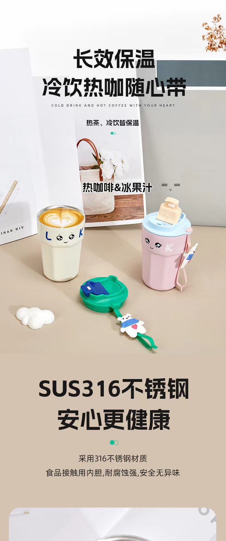 316不锈钢奇趣咖啡杯保温杯网红随手杯男女学生车载杯子便携水杯