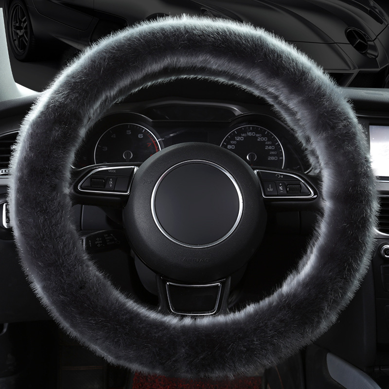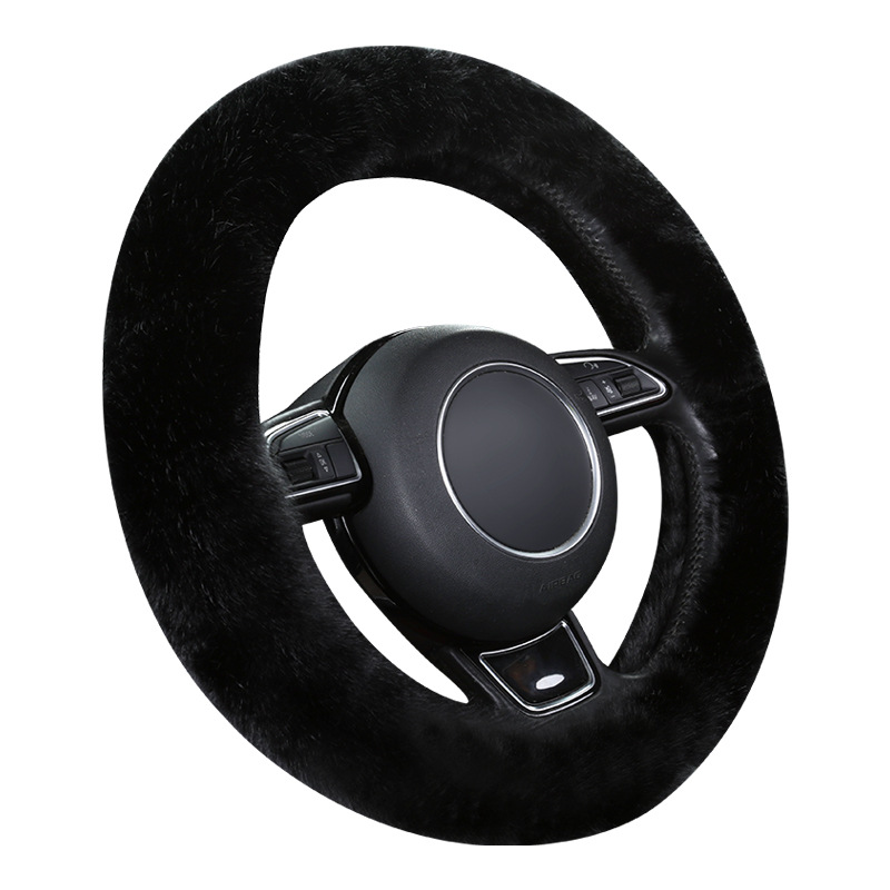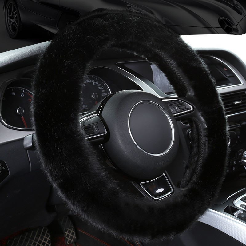 新款汽车方向盘套冬季仿狐狸毛绒车用把套中号38cm通用型装饰把套