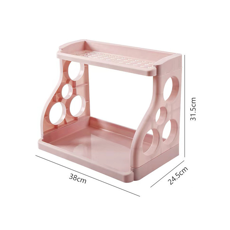 多用途厨房置物架双层塑料置地厨房调料架可拆卸多孔刀具储物架