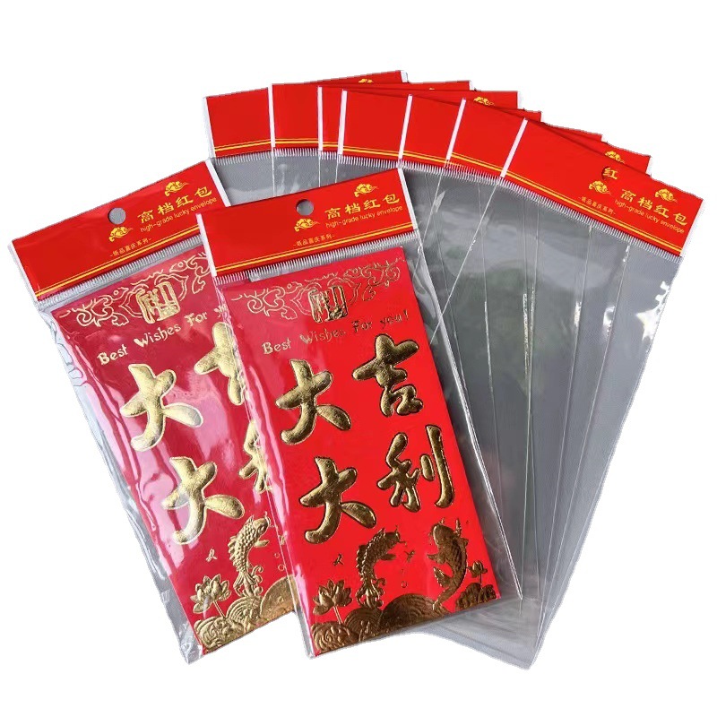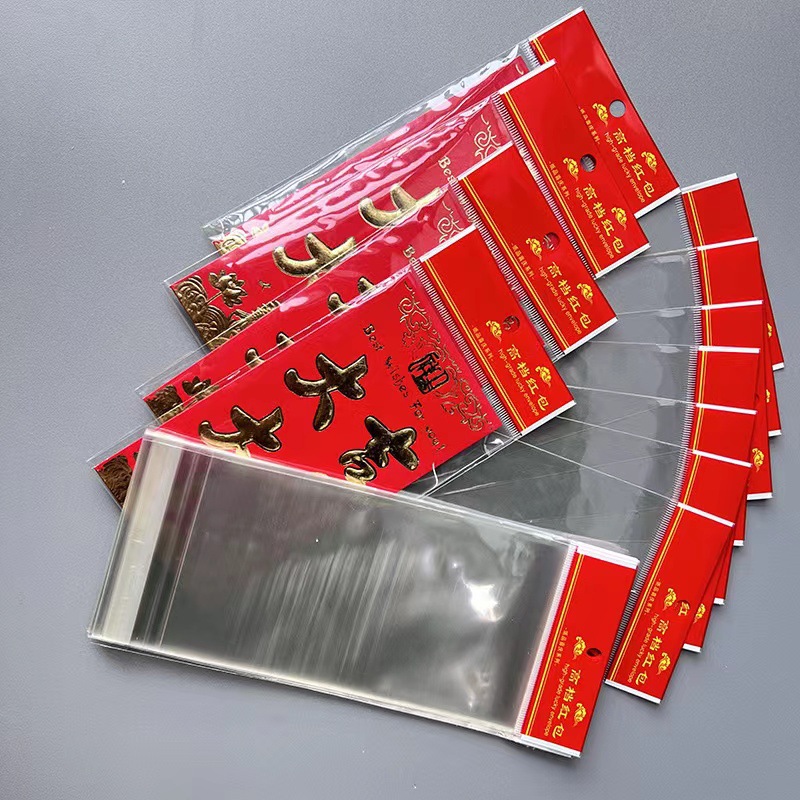 红包包装袋透明塑料自封红色卡头袋子红包通用包装袋