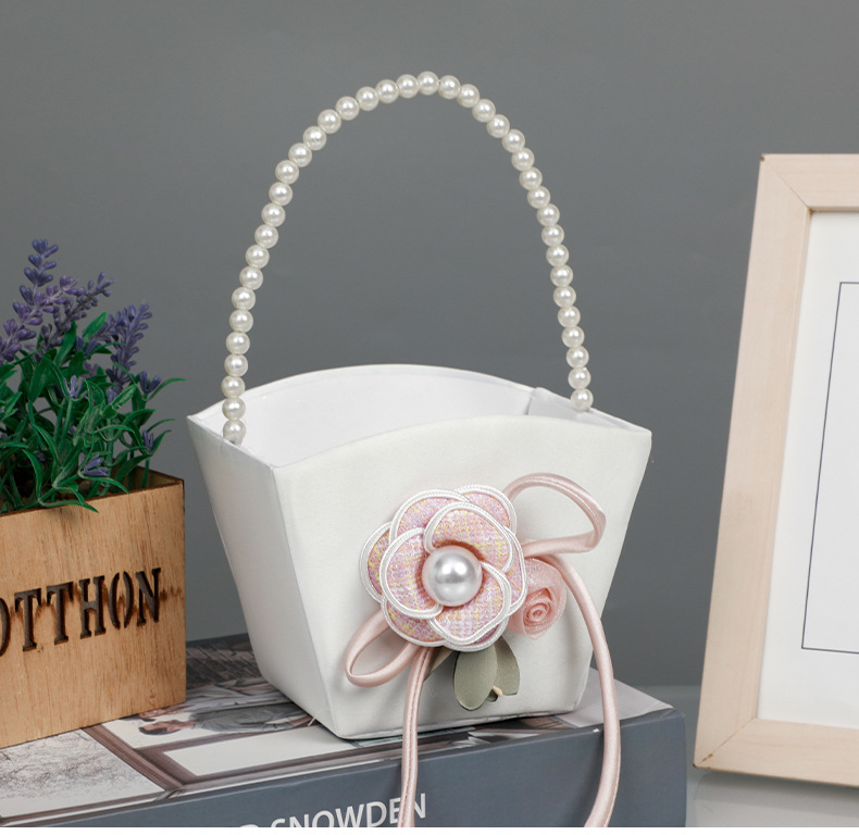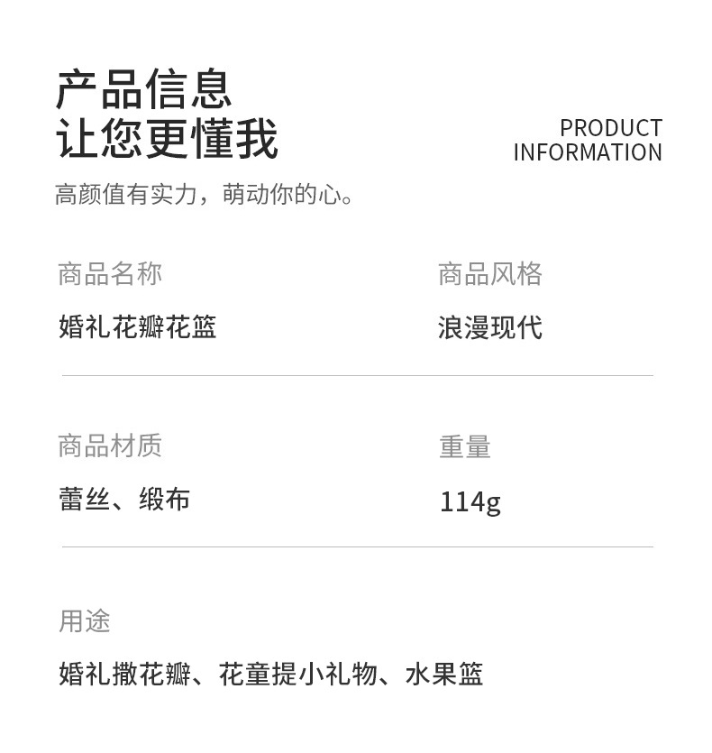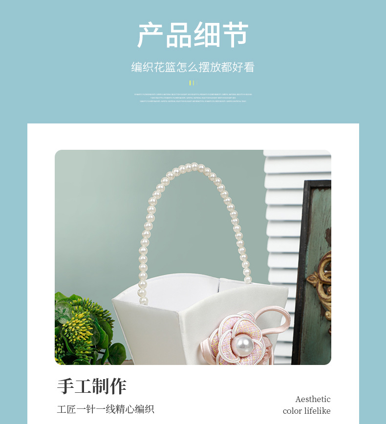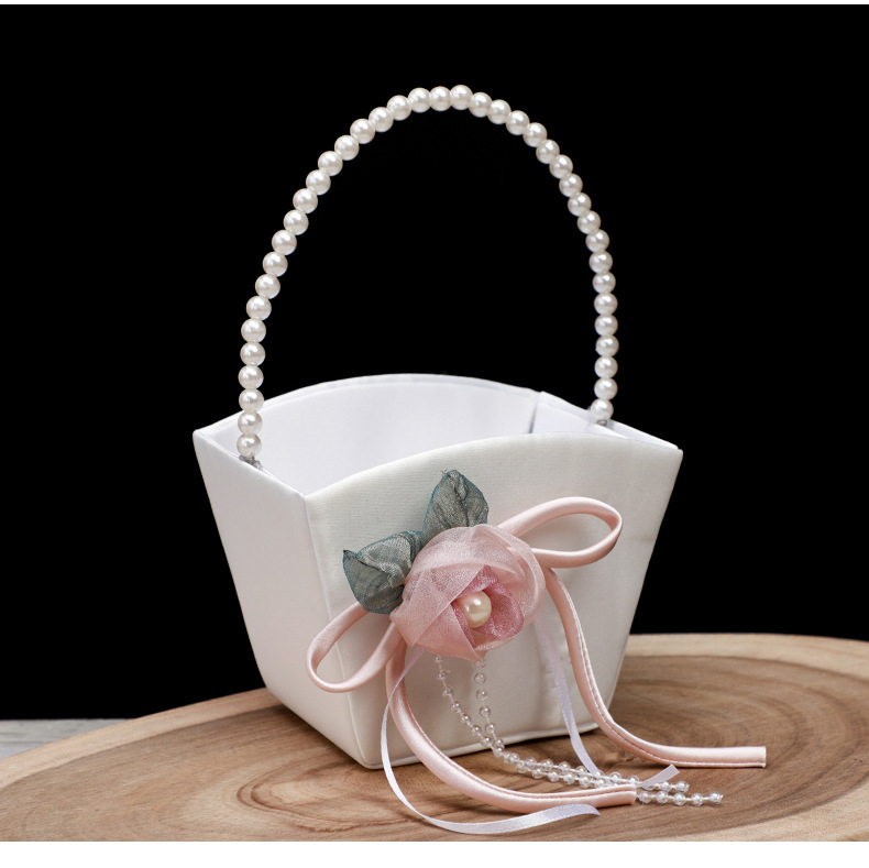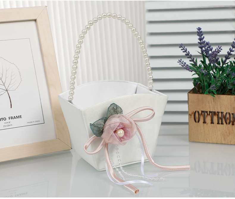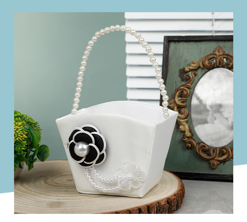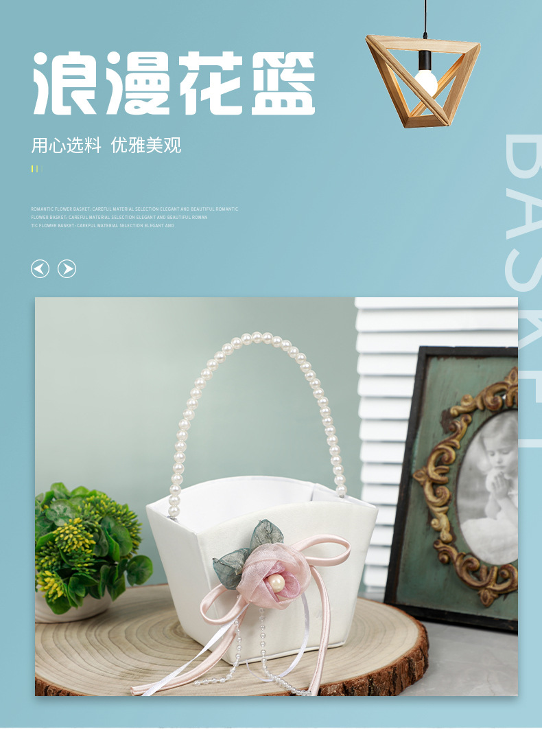 简约白色花篮花童手提撒花塑料手编花篮西式仿真花装饰新娘喜篮子 English | 投诉