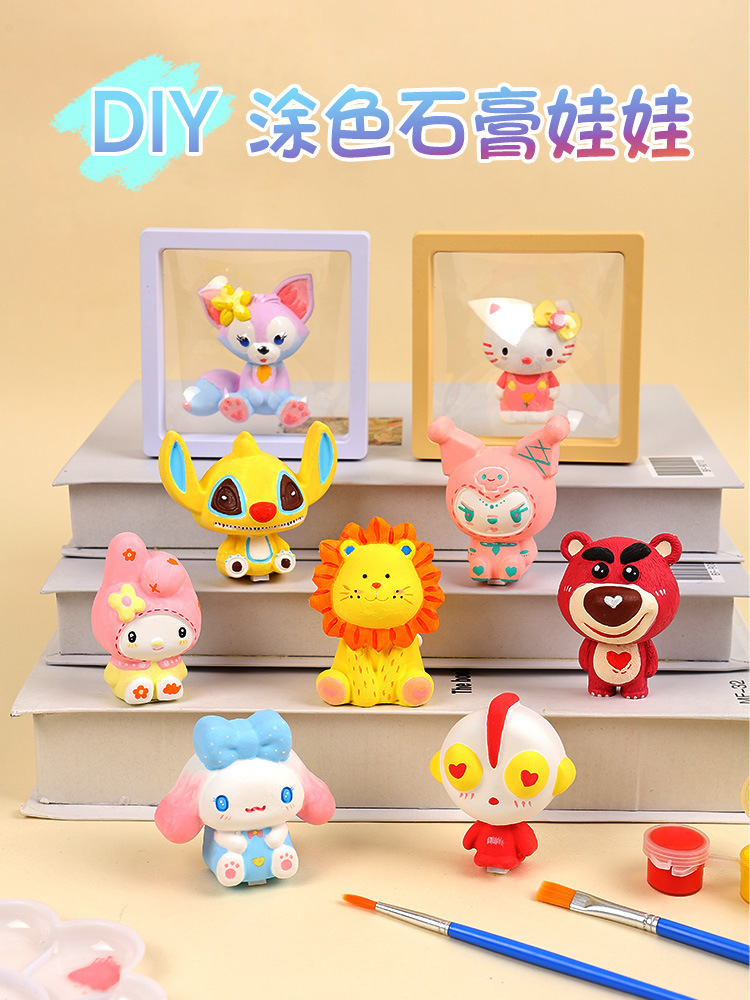 儿童涂色石膏娃娃迷你儿童手工diy彩绘白胚涂鸦公仔夜市地摊玩具 English | 投诉