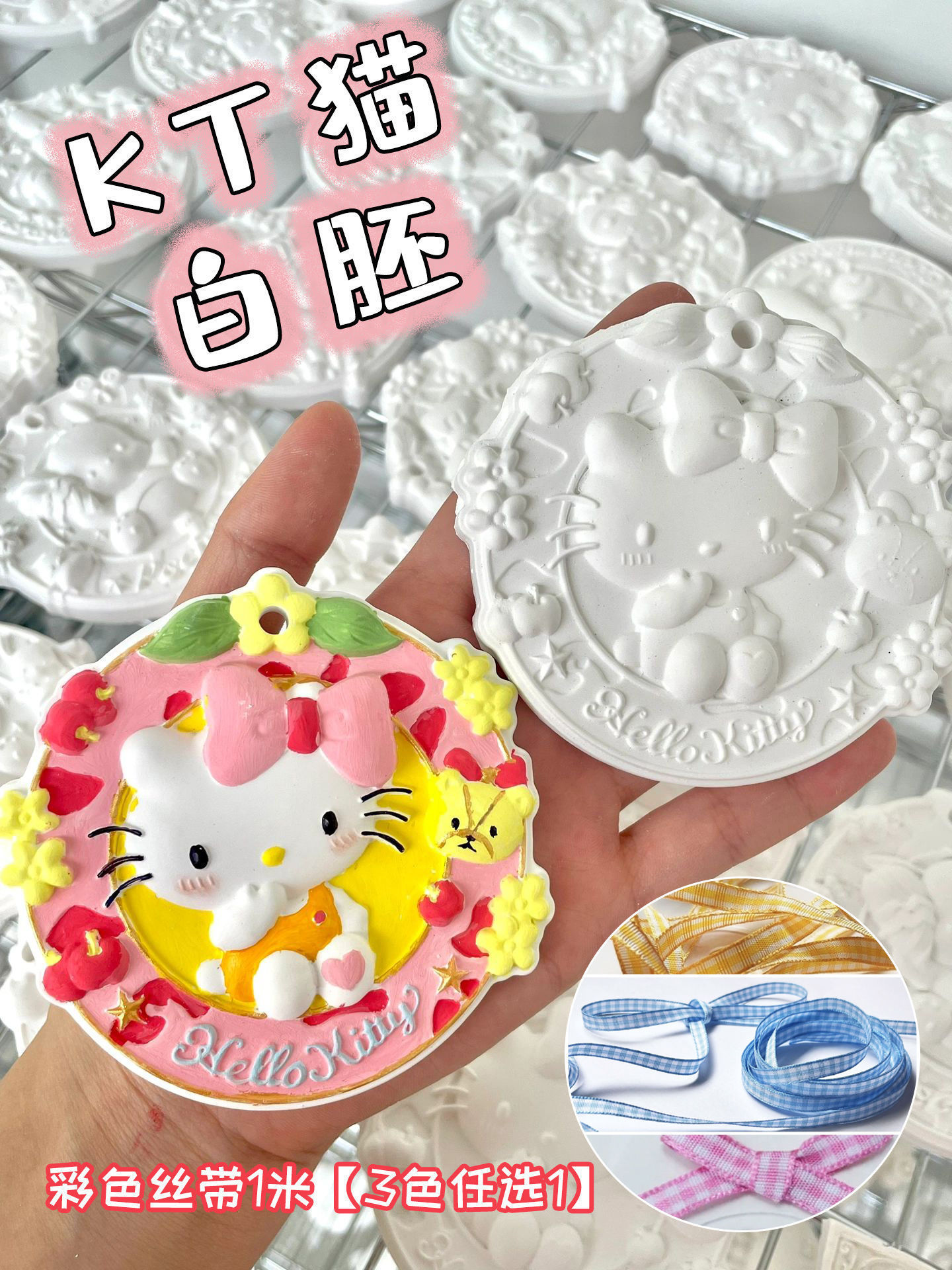 kt猫白胚挂牌【10cm*10cm】(12色颜料+金色勾线笔+丝带) ¥550 5000个可售