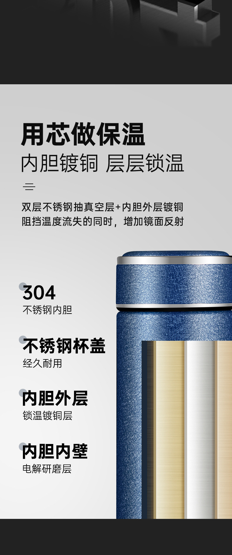 真空保温杯冰花漆耐磨防刮高档直身杯办公车载304不锈钢茶水杯子 投诉