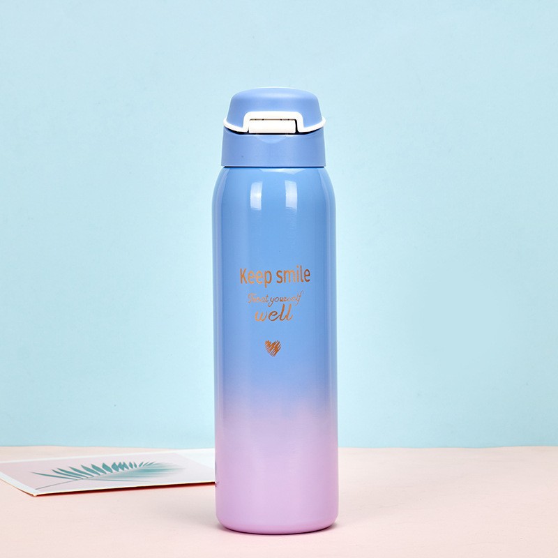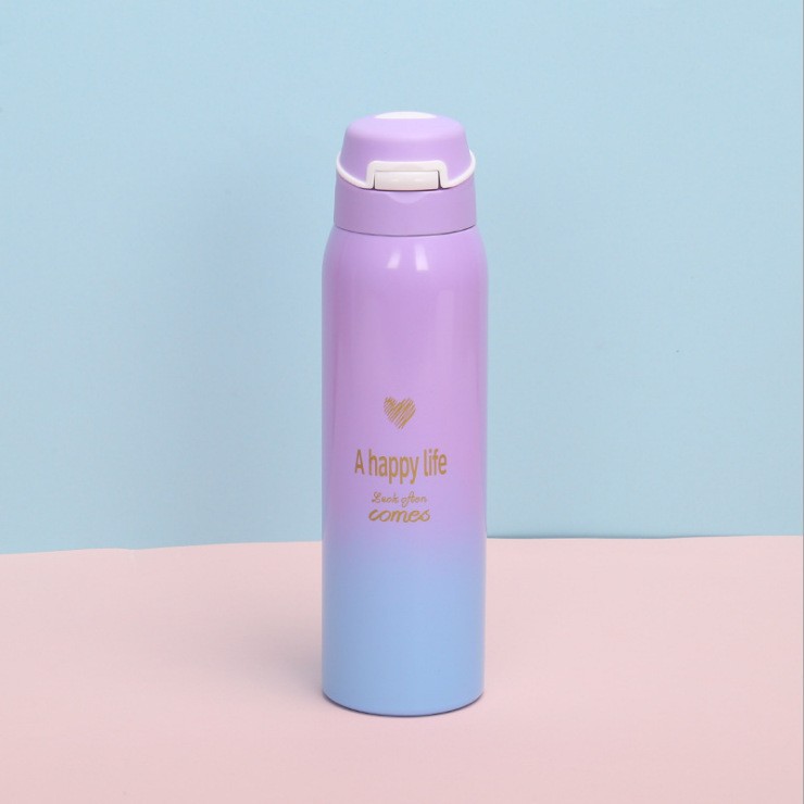 韩版ins渐变色弹跳盖吸管保温杯学生运动创意鸭嘴水杯304不锈钢广