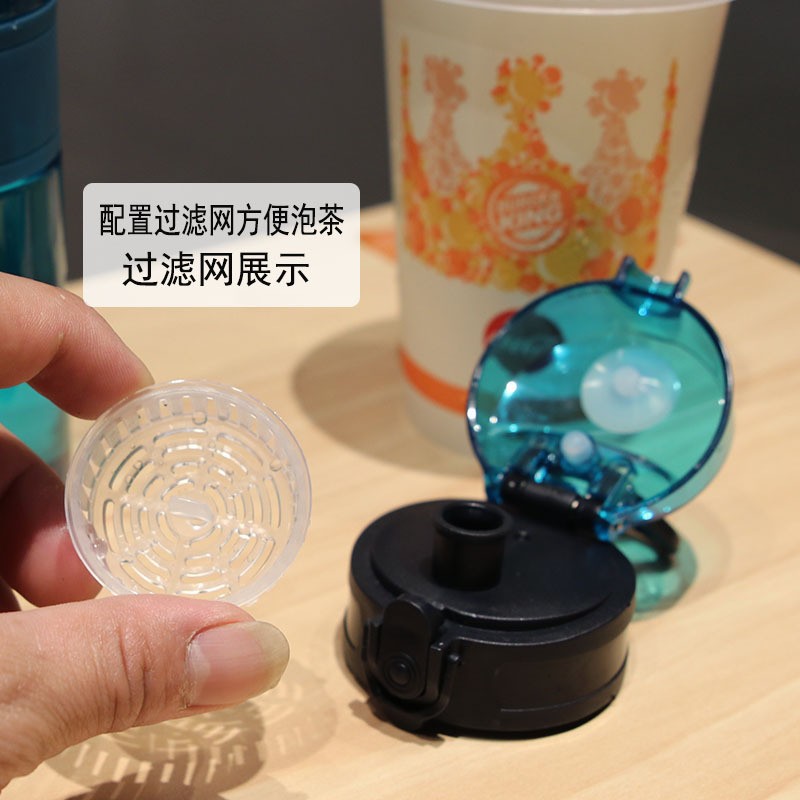 新款运动塑料杯男防摔耐热带刻度过滤网杯子女学生户外运动太空杯 投诉