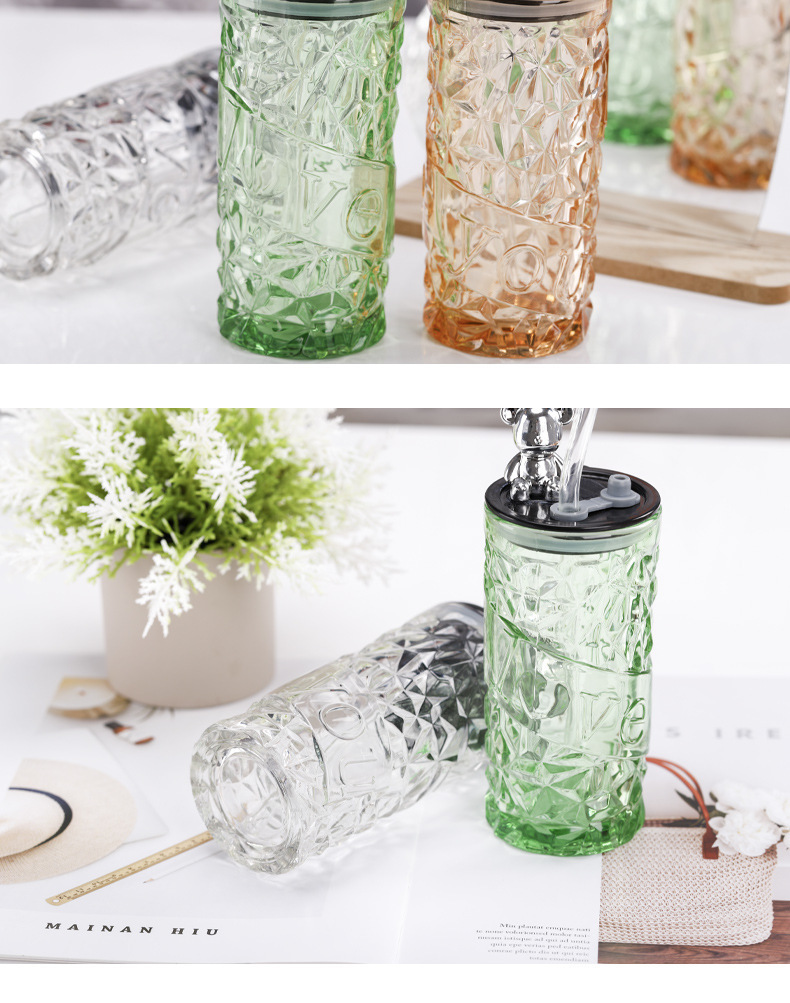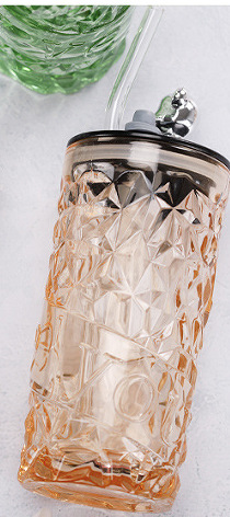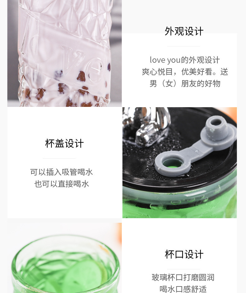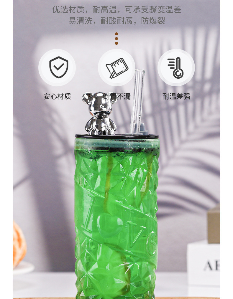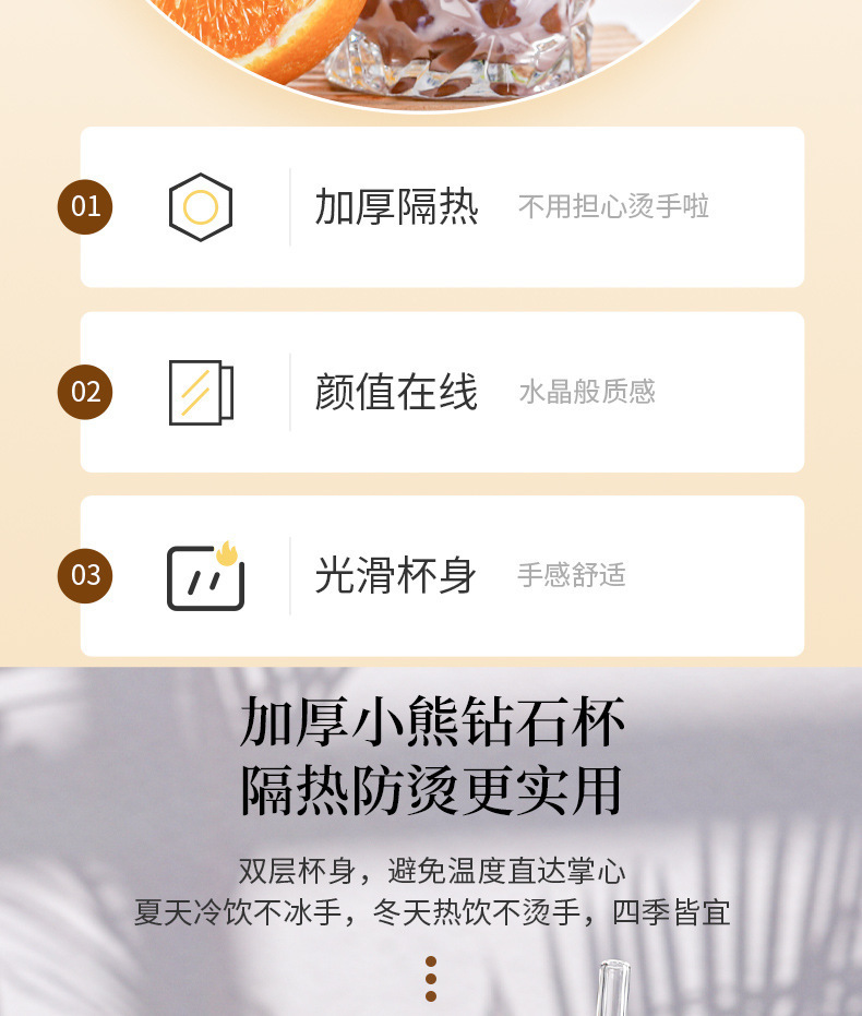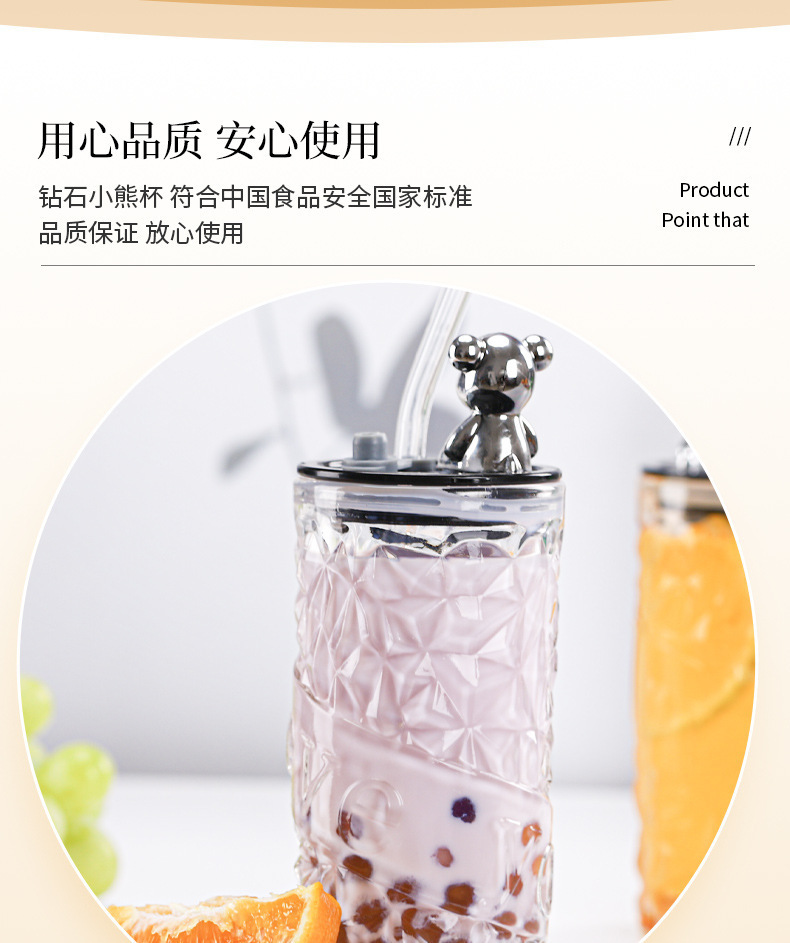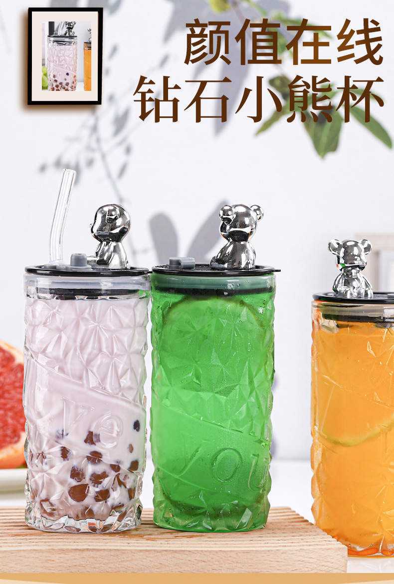钻石小熊杯杯玻璃水杯带盖吸管杯创意可爱办公室水杯牛奶杯果汁杯