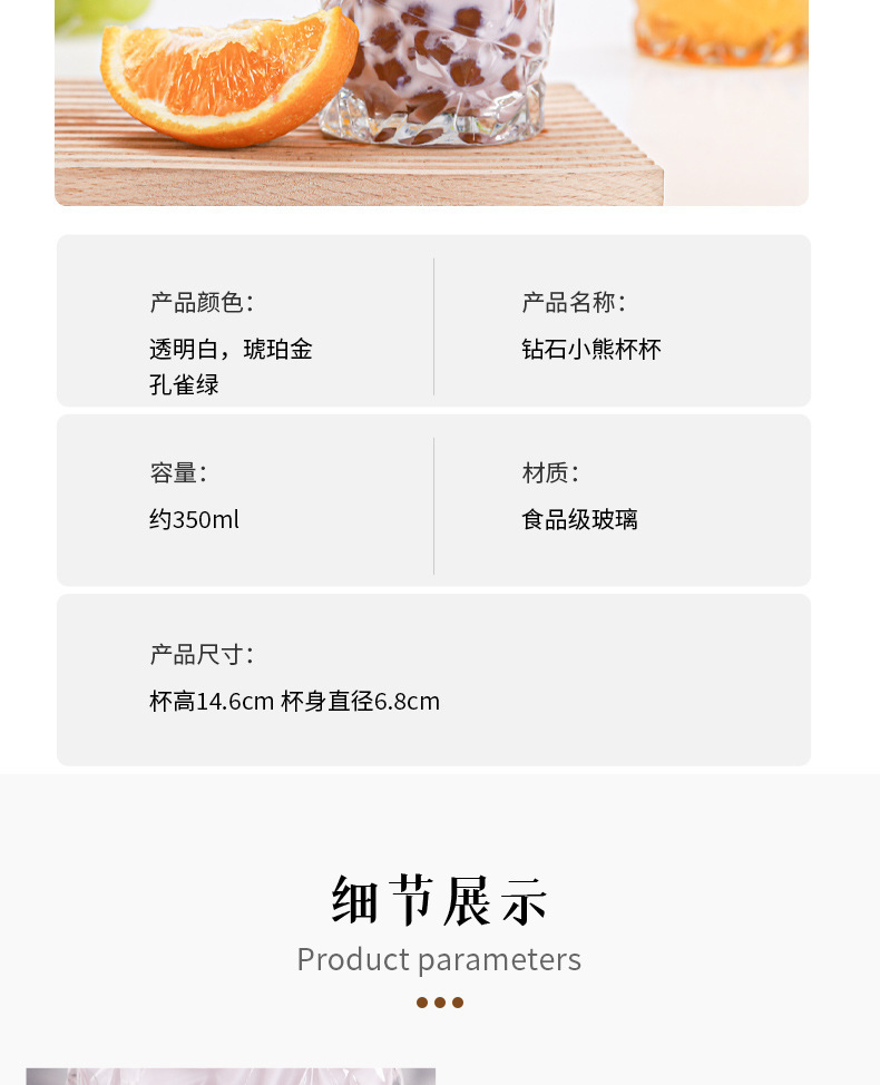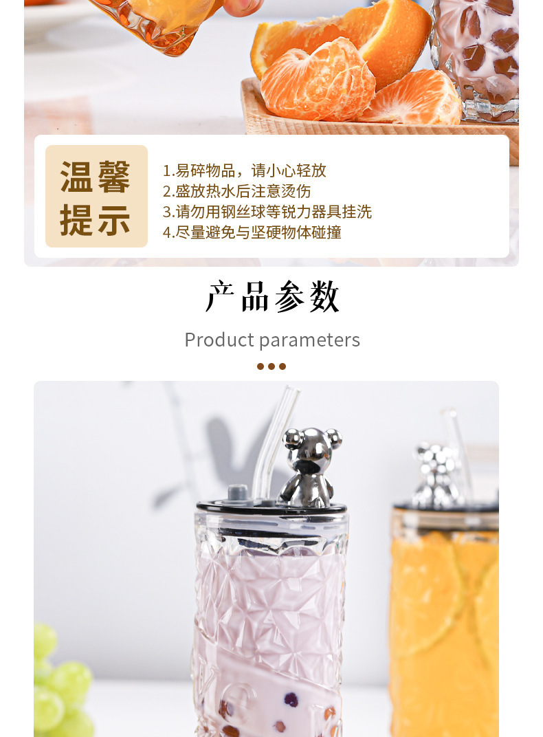 钻石小熊杯杯玻璃水杯带盖吸管杯创意可爱办公室水杯牛奶杯果汁杯 投诉
