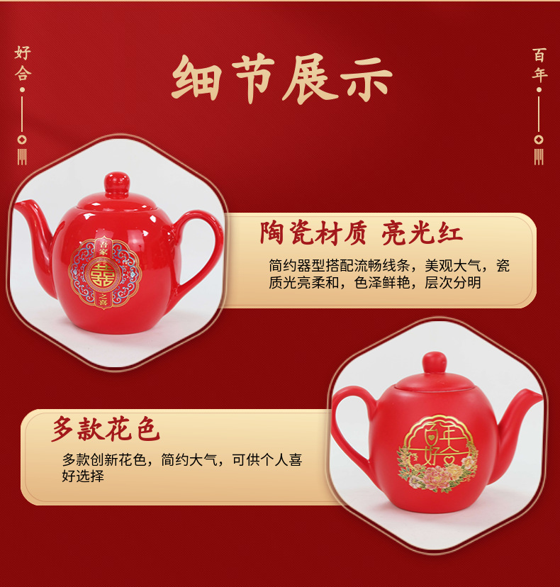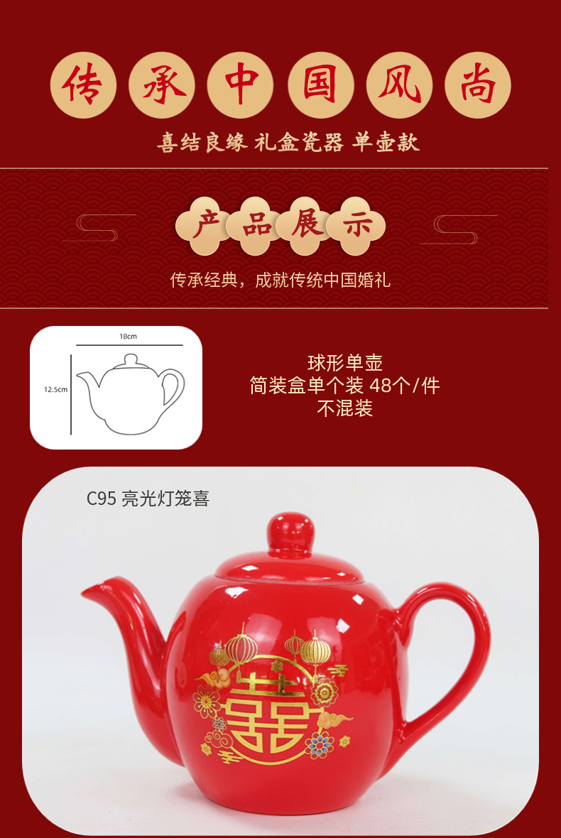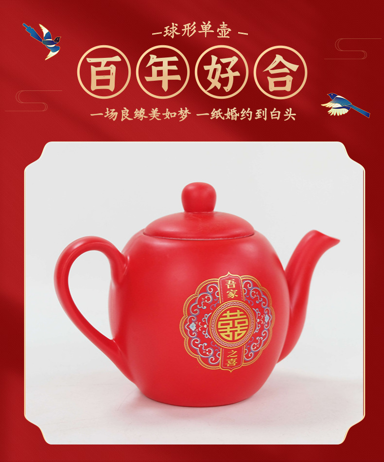结婚红色茶壶陶瓷单壶礼盒装茶具喜事用品婚庆倒茶单壶 English | 投诉