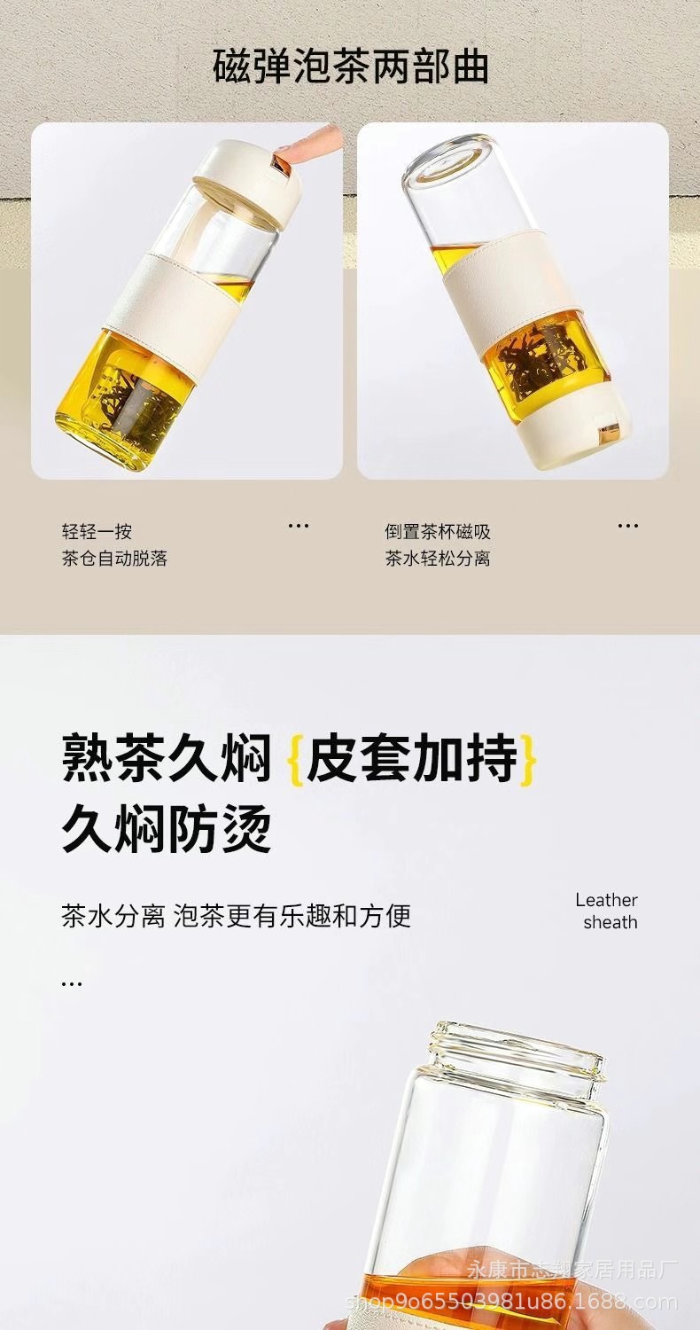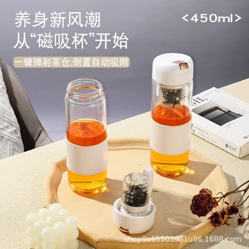 磁吸玻璃杯耐高温磁弹泡茶杯茶水分离源头厂家广告杯礼品杯子批发