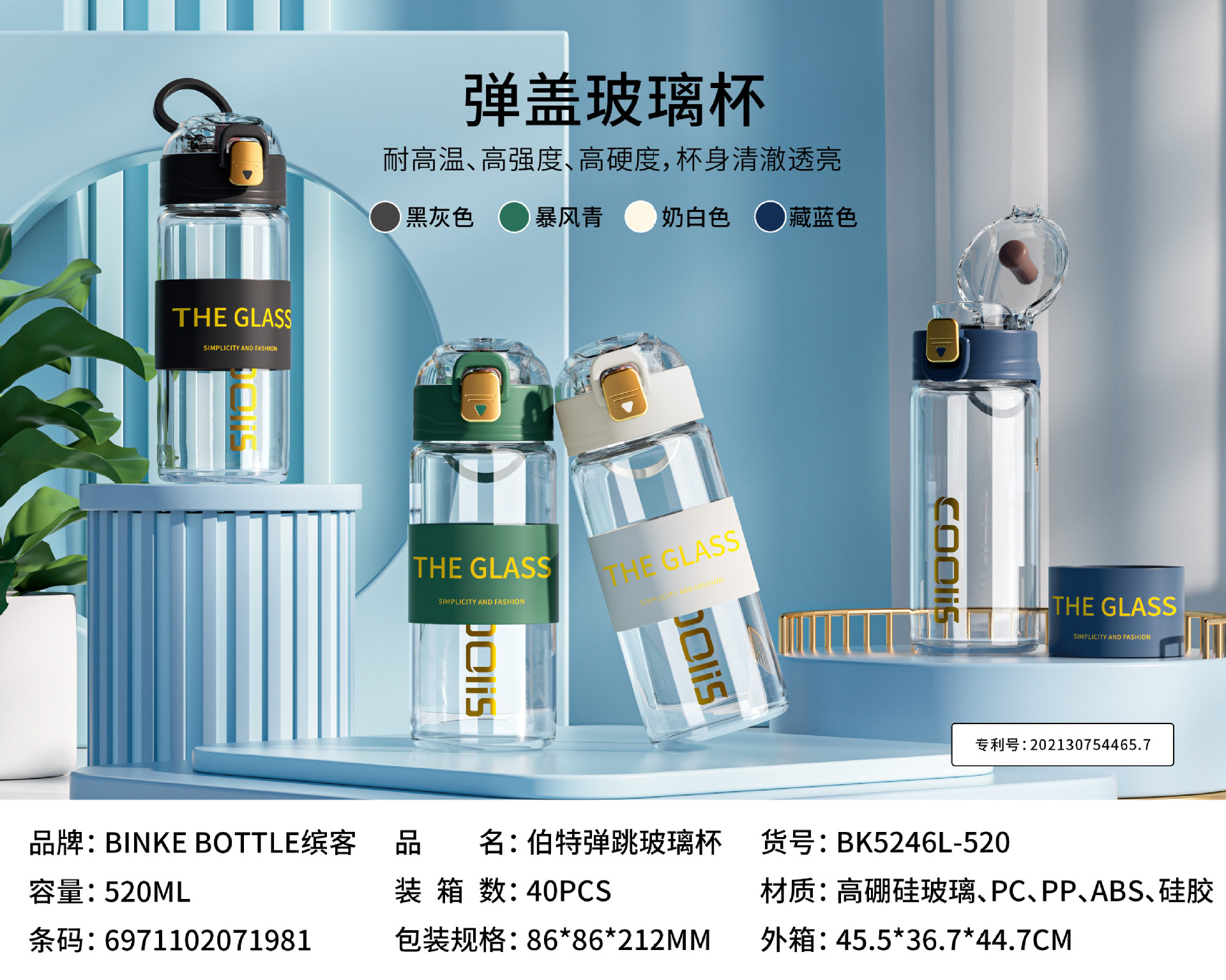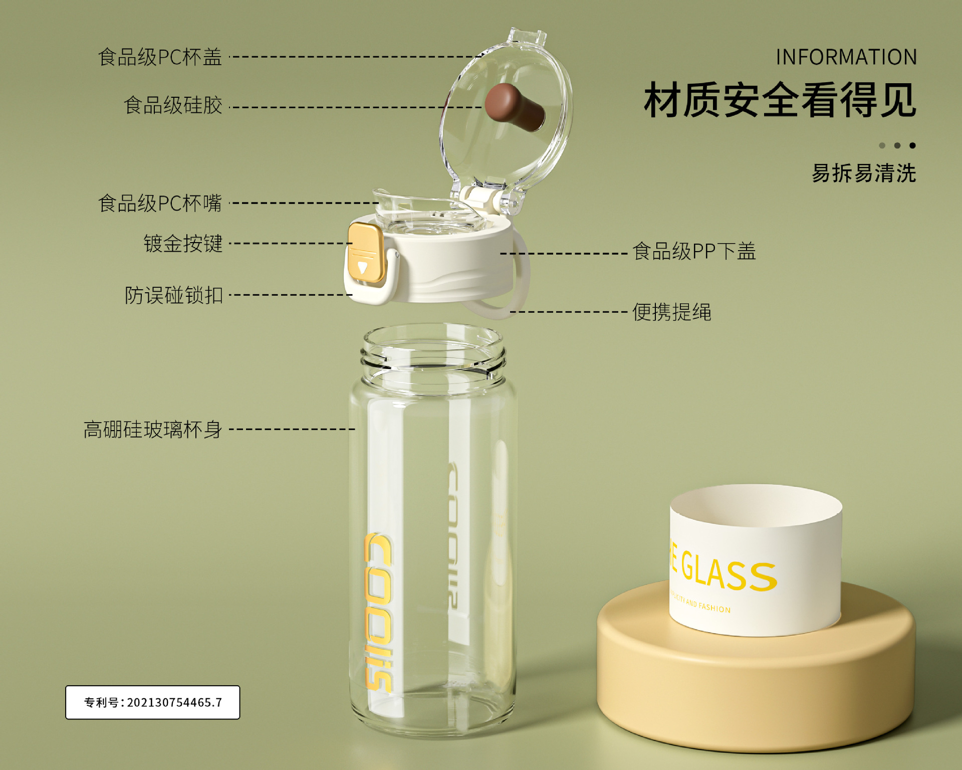 材质:高硼硅玻璃+PC+PP+硅胶