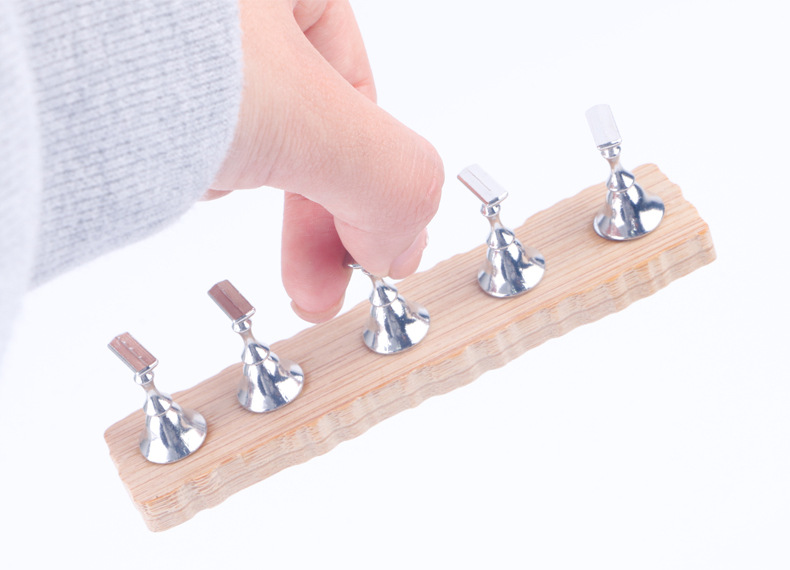 跨境新款原木底座磁吸美甲棋子甲托初学者美甲师固定甲片练习架