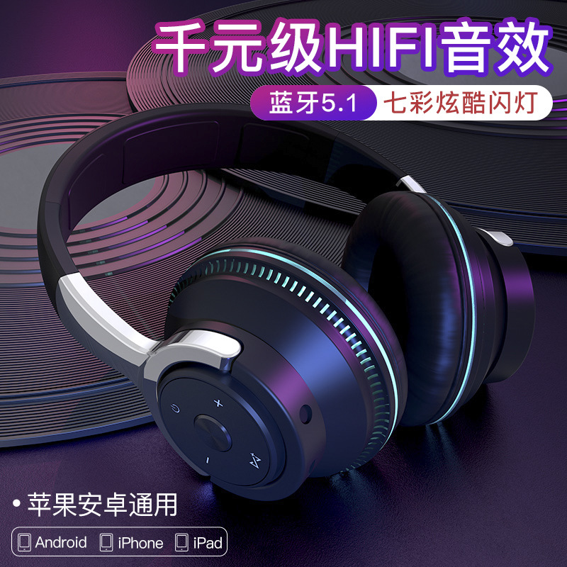 新款跨境爆款无线头戴式蓝牙耳机重低音立体声插卡炫彩灯电脑耳麦