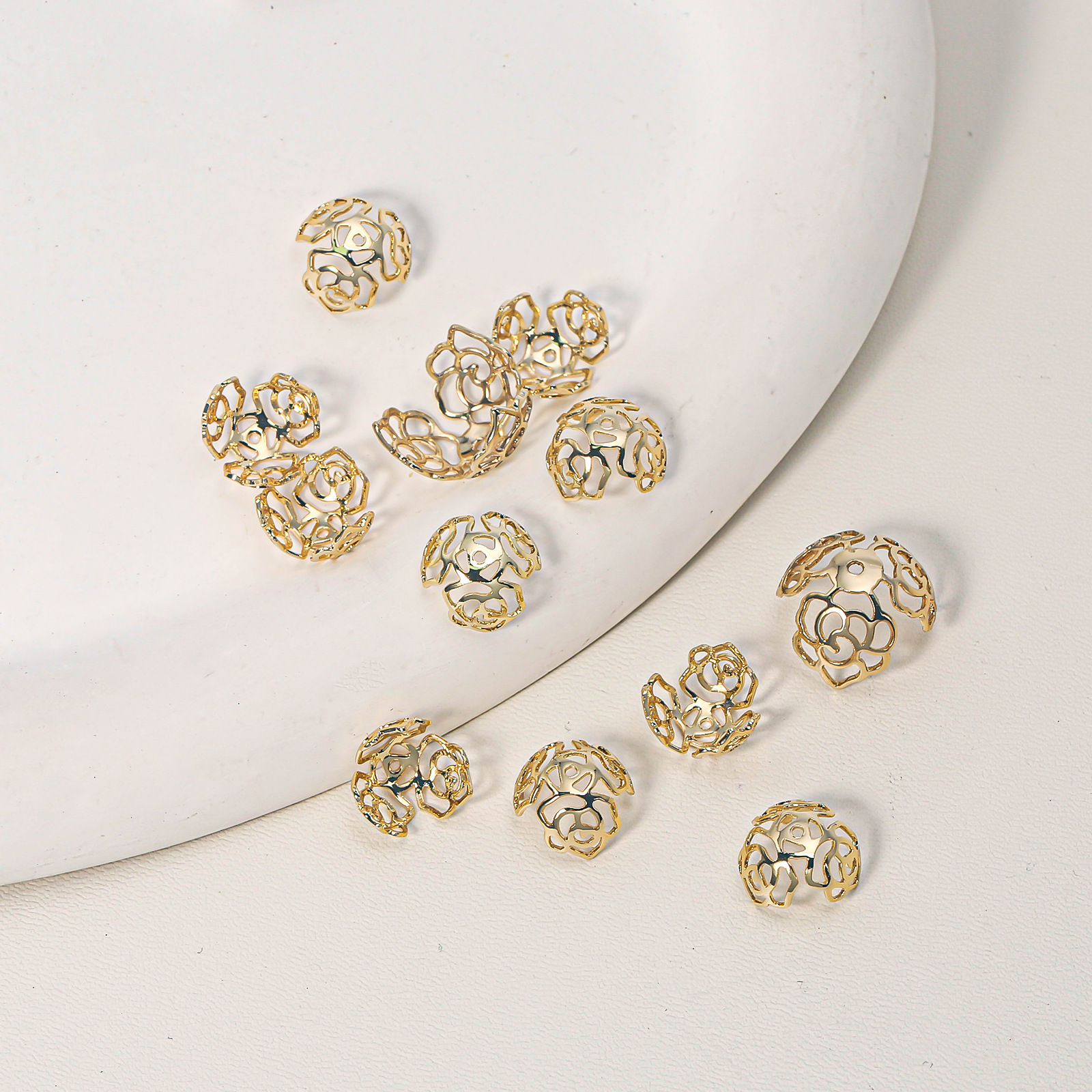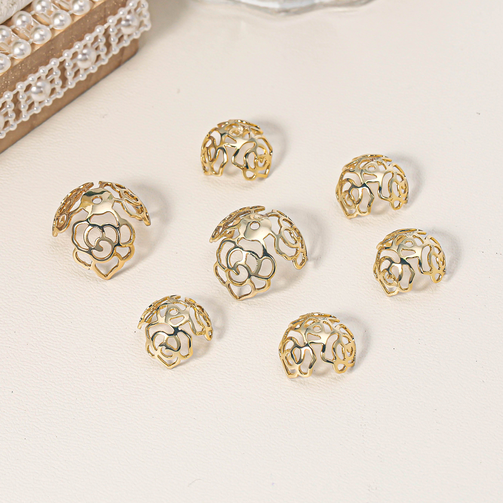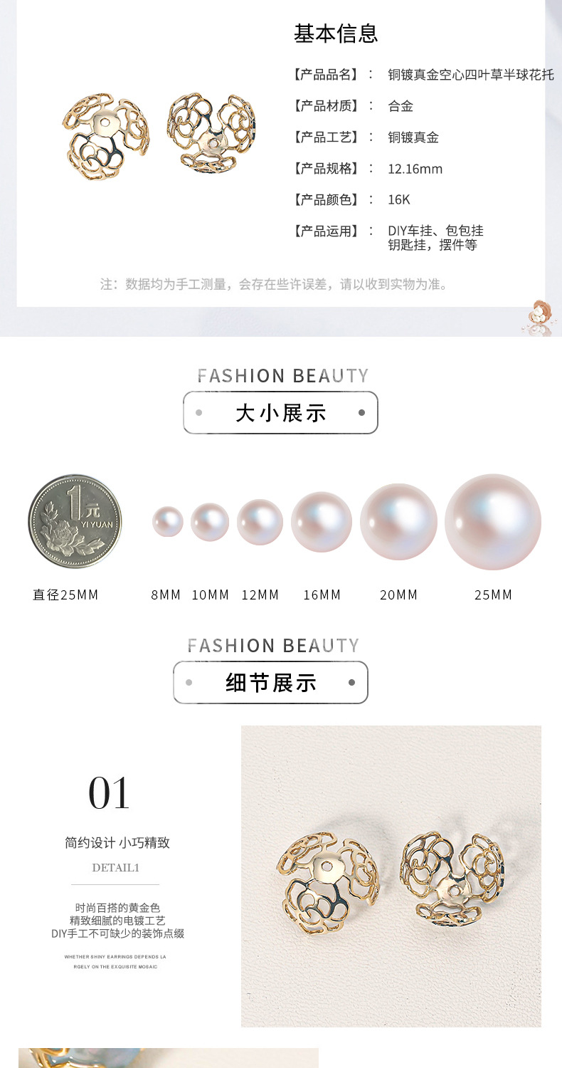 铜镀真金18K空心四叶草镂空半球花托保色diy圆珠饰品配件批发 English | 投诉