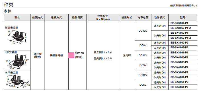 (仅限EE-SX3162/4162-P1-Z)
