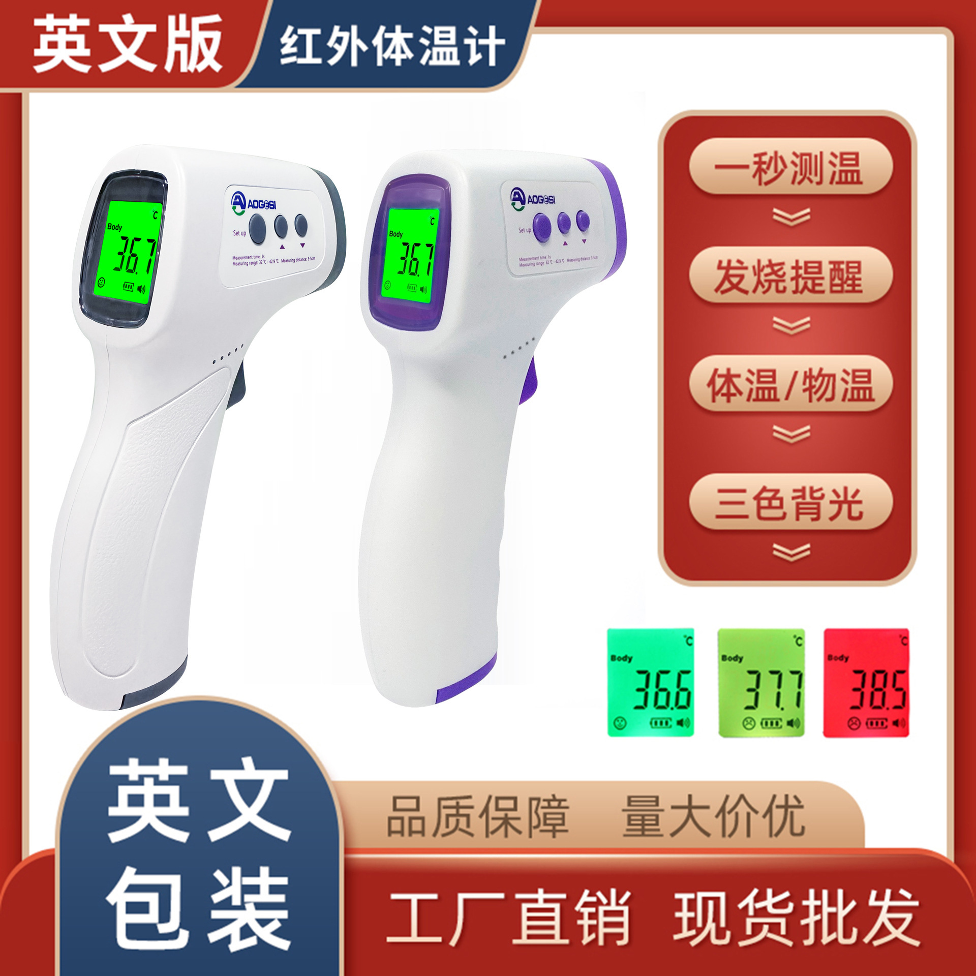 厂家批发外贸跨境电商英文额温枪
