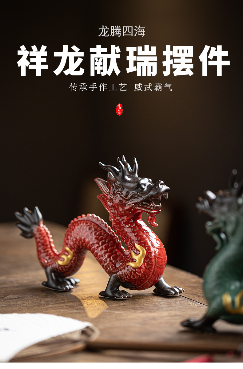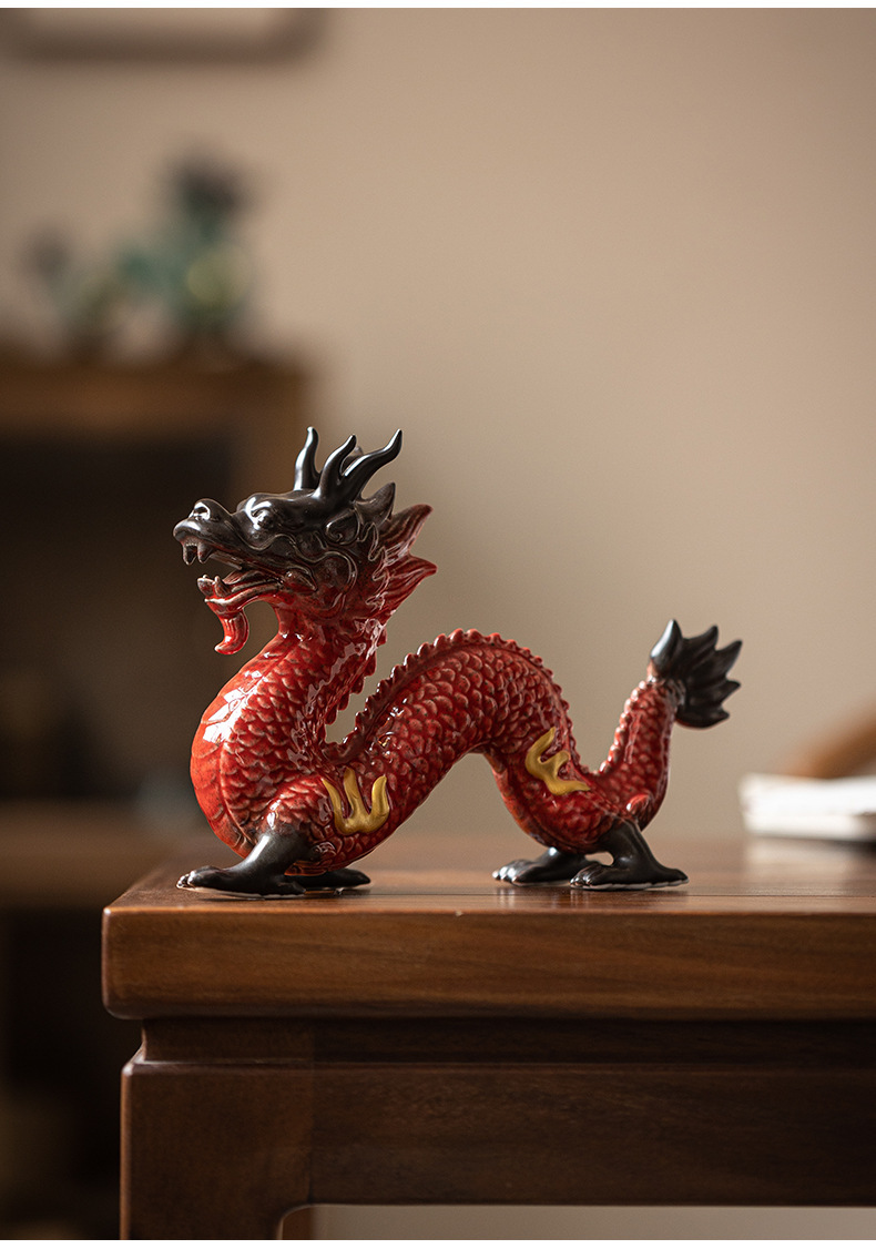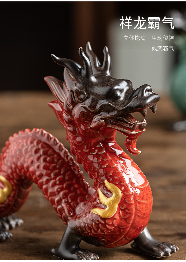 陶瓷龙摆件客厅装饰品红色青龙生肖龙吉祥物办公室桌面工艺品 English | 投诉