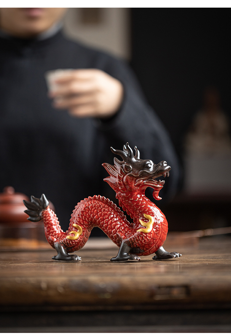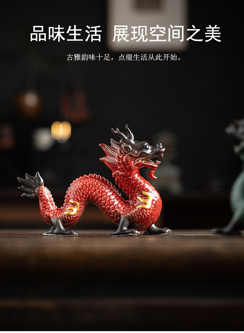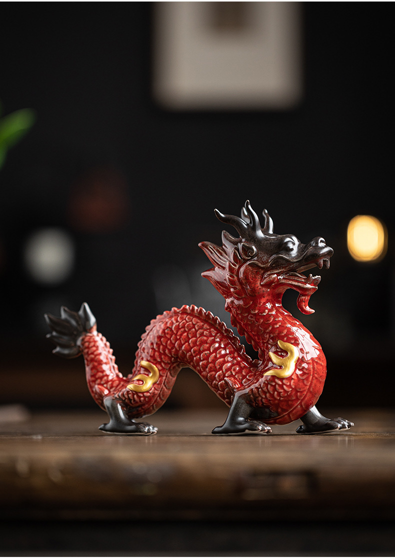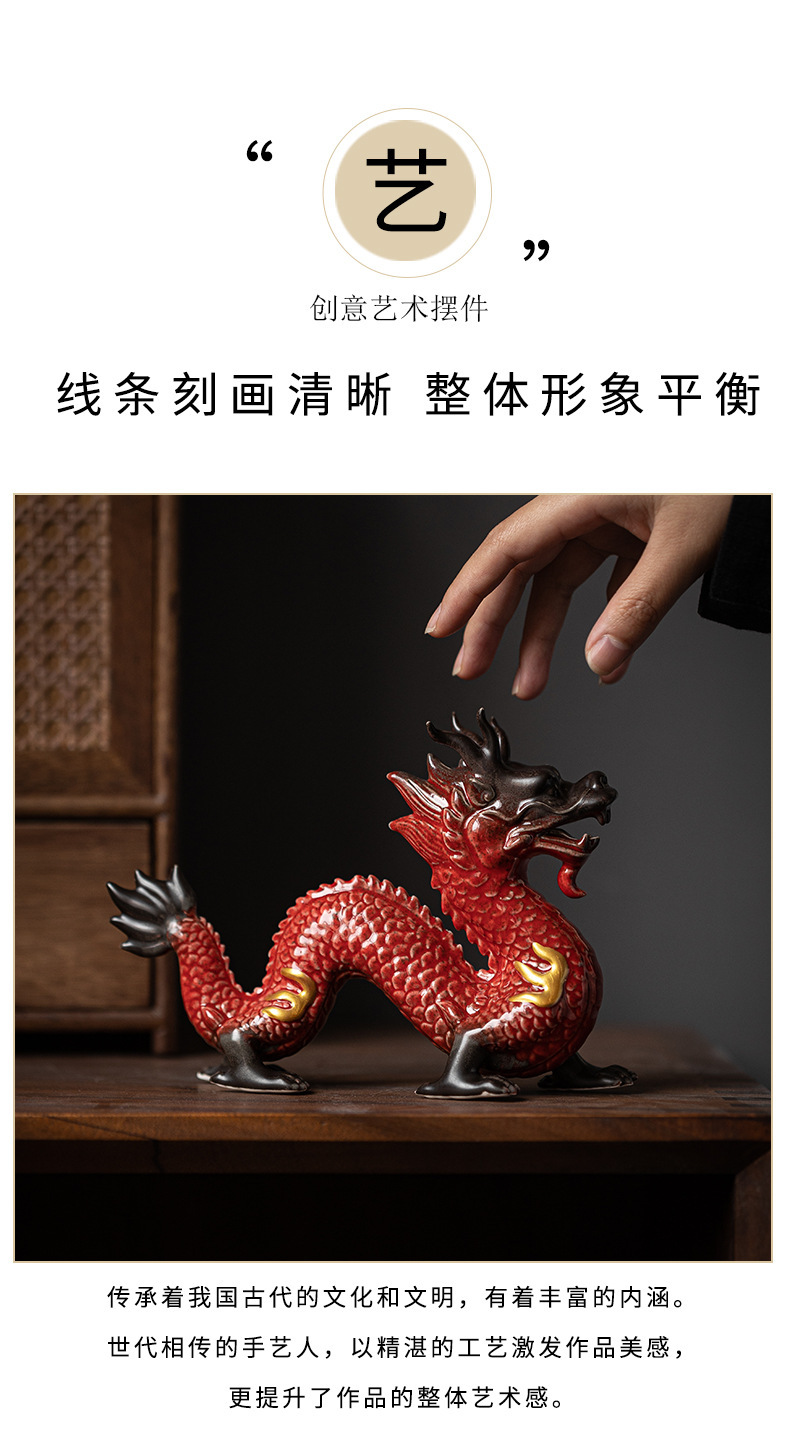 陶瓷龙摆件客厅装饰品红色青龙生肖龙吉祥物办公室桌面工艺品 English | 投诉