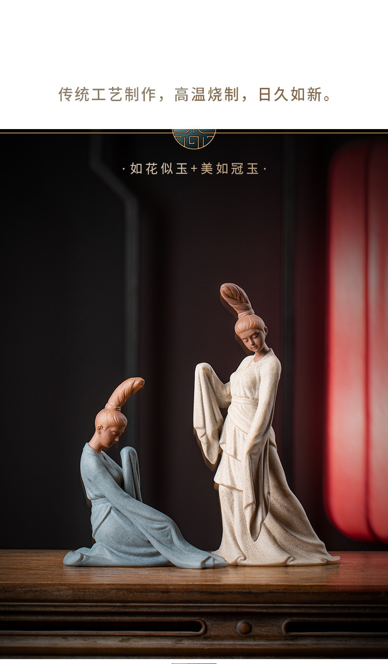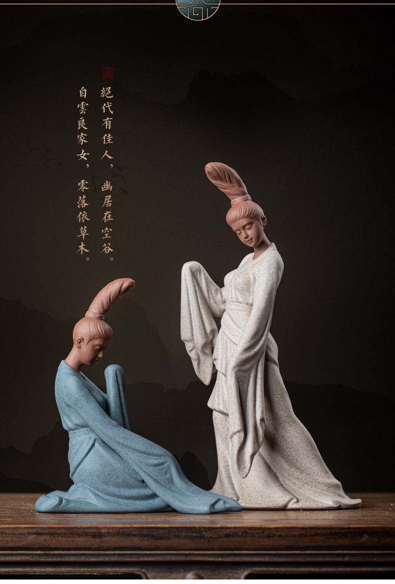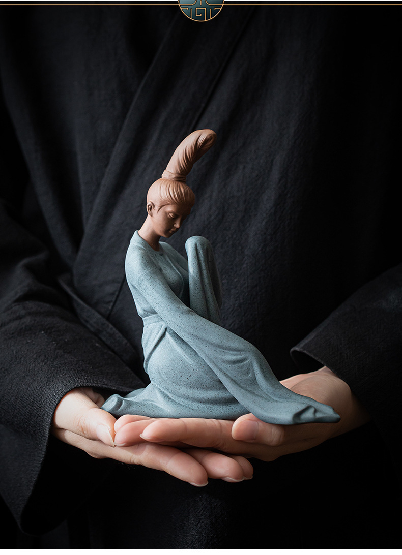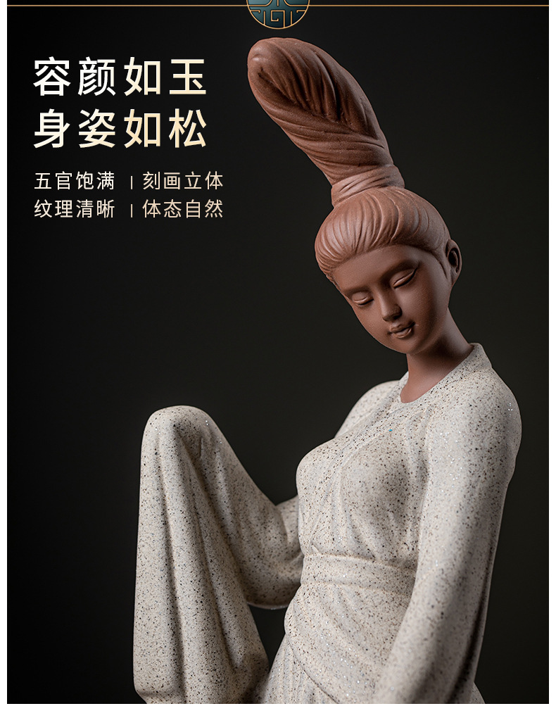 创意紫砂茶宠摆件精品仕女人物茶空间茶桌面装饰禅意鱼缸盆栽造景 English | 投诉