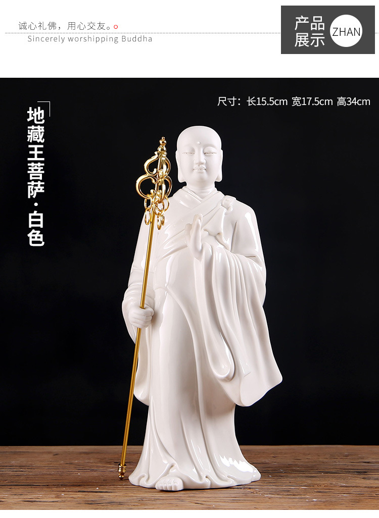 娑婆三圣站姿地藏王陶白瓷佛像摆件结缘装饰品工艺品家居禅意 English | 投诉