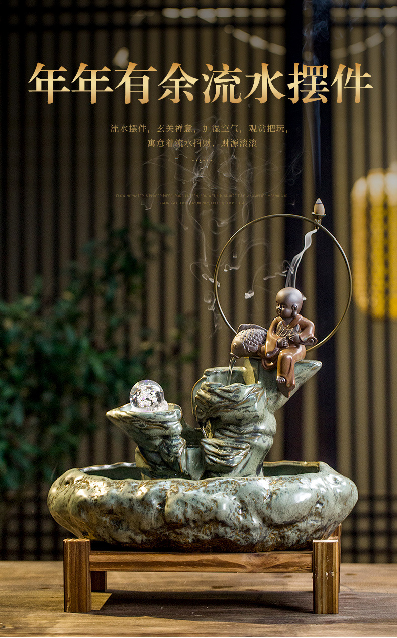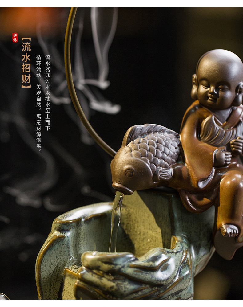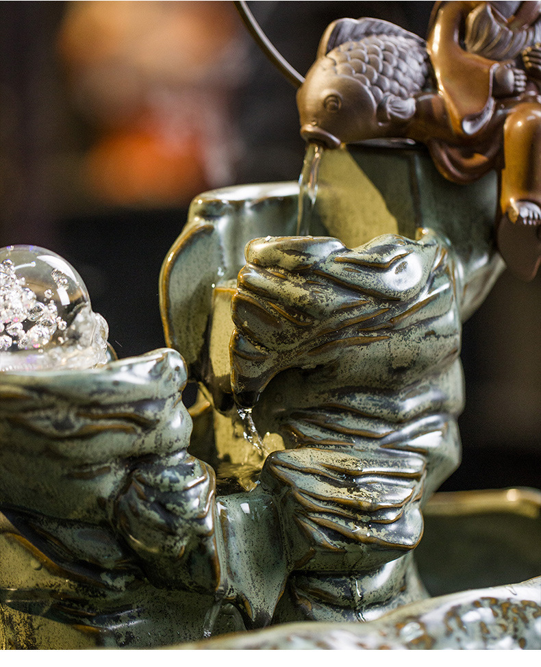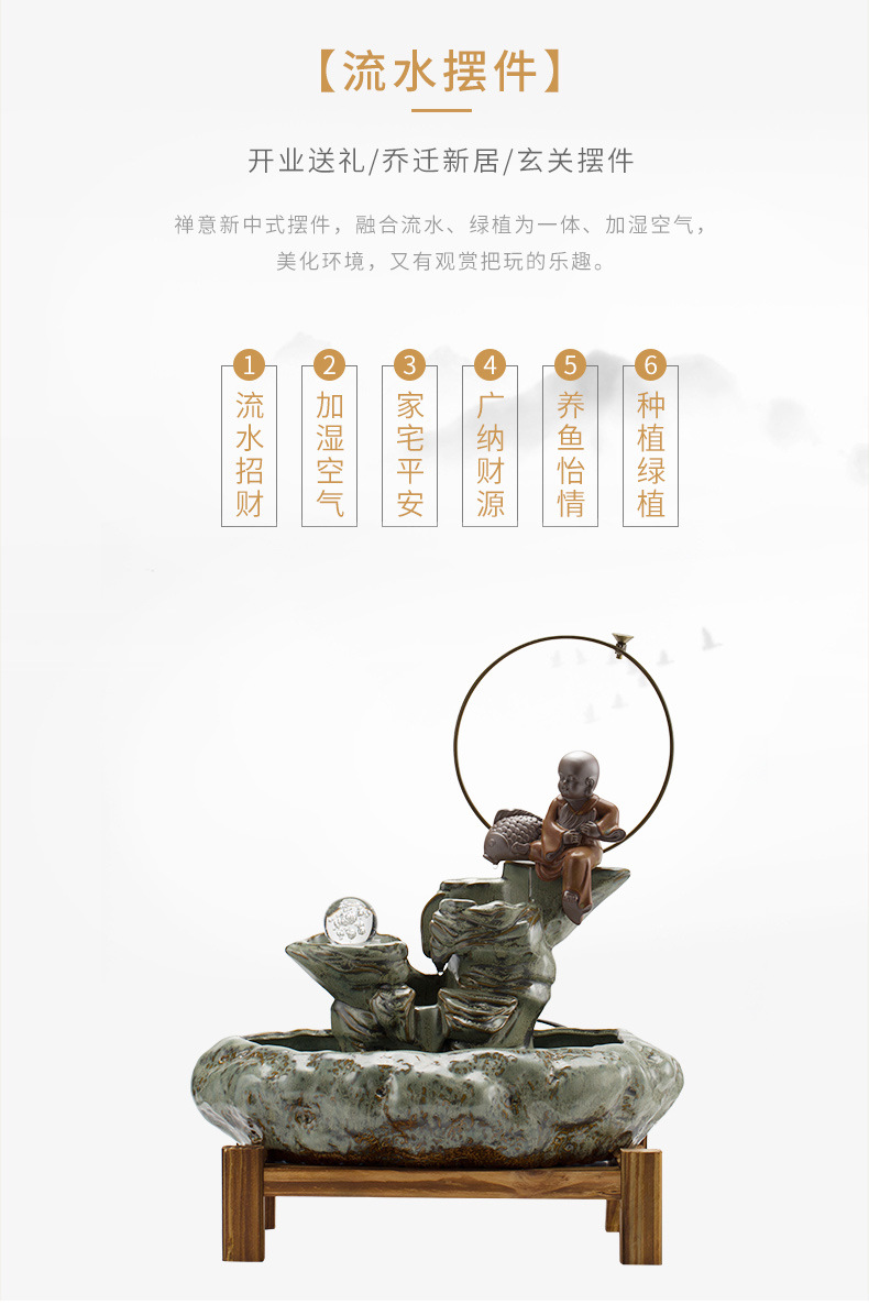 大号客厅鱼缸创意陶瓷流水器摆件循环装饰品桌面加湿器 English | 投诉