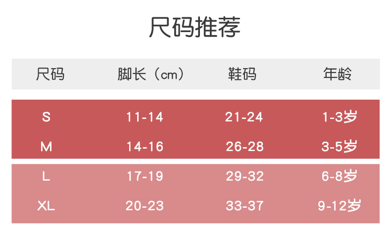 | XL码9-12岁【建议鞋码33-37码】 | ¥0 | 6547255双可售 |