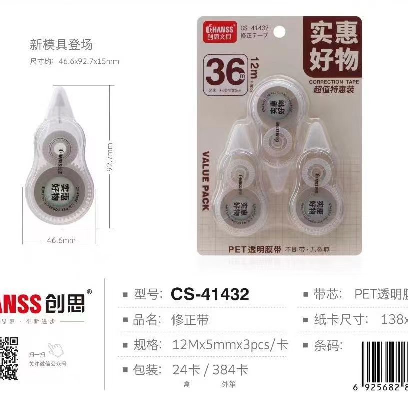 创思修正带3个装41432【36米/卡】 ¥0 49998个可售